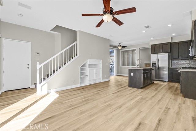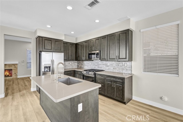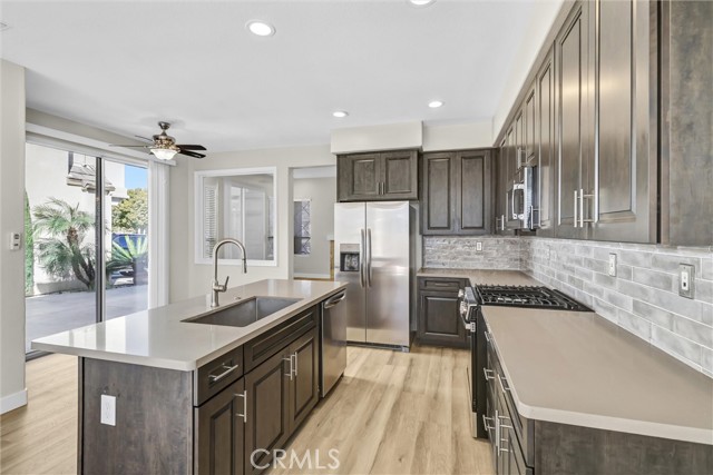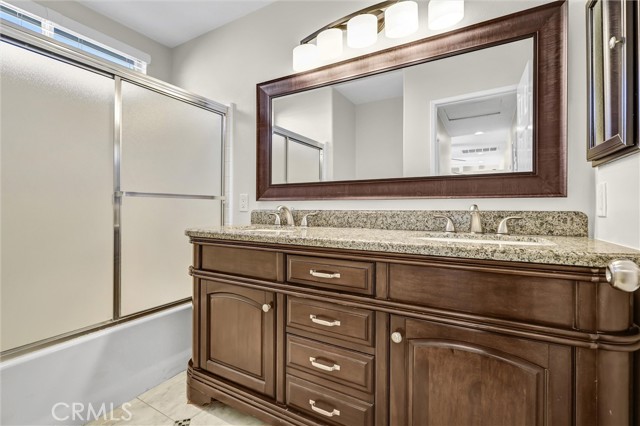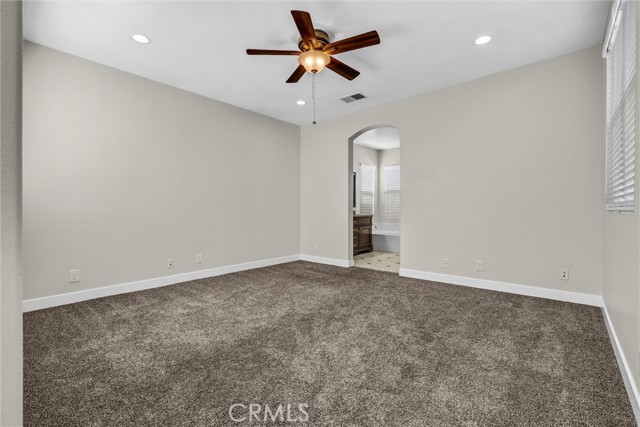 Welcome home to this beautifully appointed residence with exceptional curb appeal. A charming arbor entry and lush landscaping create a warm first impression, complemented by an extra-long driveway for added convenience. Inside, you’ll find a light-filled, open floorplan designed for comfortable living and effortless entertaining. Expansive windows invite in natural light, while the spacious kitchen serves as the heart of the home—featuring a large island, stone countertops, under-mount sink, and sleek stainless steel appliances. The serene primary suite offers a private retreat, complete with a spa-inspired bathroom showcasing a luxurious oval soaking tub, separate walk-in shower, dual sinks with granite counters, and a generous walk-in closet. Both bathrooms are thoughtfully finished with granite countertops and dual vanities. Additional highlights include ceiling fans, recessed lighting, stylish window coverings throughout, and a convenient upstairs laundry room. Enjoy low-maintenance living with a beautifully kept front yard and a spacious backyard perfect for summer barbecues and gatherings with friends. Ideally situated in the desirable gated community of Canterbury, residents enjoy access to an association pool and spa, plus a community park just a short stroll away. Located less than two miles from Don Juan Avila Middle School and assigned to highly rated schools, including Canyon Vista Elementary School—a distinguished California Blue Ribbon School—this home offers both comfort and convenience. Close to shopping, dining, and entertainment, this inviting home truly has it all.