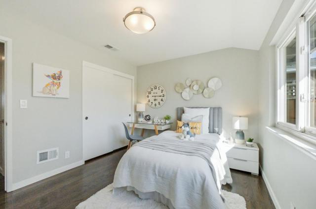 Modern lines and chic finishes define this stunning 4-bedroom, 2.5-bathroom home in the heart of Cambrian. Offering 1,984 sq ft of living space plus a permitted 120 sq ft ADU, this thoughtfully upgraded property blends style, comfort, and functionality. The open floor plan showcases a permitted kitchen remodel featuring a Bosch induction cooktop and convection oven, custom cabinetry, a central island, Heath Tile backsplash, stained oak flooring with toe-kick lighting, skylight, walk-in pantry, and indoor laundry with a half bath. Major updates include a 2016 composite roof and HVAC system, with the furnace relocated to the attic to maximize storage. The primary ensuite was remodeled in 2022, and all bathrooms feature Toto toilets. Additional high-end touches include California Closet organizers with cedar linings and a fully networked CAT6 system with premium Wi-Fi hubs. Enjoy energy efficiency with owned solar and added comfort with a water softener system. The living room centers around a wood-burning fireplace with a gas starter and clean-burning insert. Beautifully landscaped grounds include fruit trees and encapsulated bamboo for added privacy. This home is a must-see.