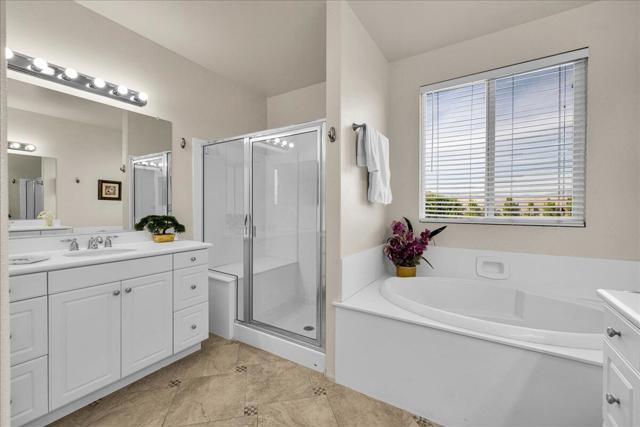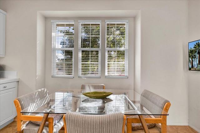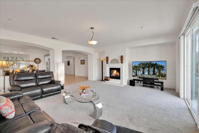 PALM SPRINGS... Perfectly positioned near premier shopping, dining, golf, world-class casinos and entertainment, this exceptional home captures the true essence of the Palm Springs lifestyle. Offering 2,288 sq. ft. of beautifully designed living space, this open-concept floor plan features 3 bedrooms and 2 bathrooms with a spacious, inviting layout. Soaring ceilings enhance the light-filled Great Room, complete with a modern gas fireplace and breathtaking panoramic mountain, city, and desert views. Stunning diagonal tile flooring with custom medallion inlays highlights the entry, walkways, and kitchen areas. Wood blinds are featured throughout, while both the Great Room and the primary suite enjoy picturesque mountain vistas. The primary suite offers a generous walk-in closet and a well-appointed bath with dual vanities, a soaking tub, and an oversized shower. Two additional bedrooms provide flexible space for guests, an office, or hobbies. Designed for both everyday living and entertaining, the kitchen features abundant cabinetry, a large center island, pantry & breakfast nook, leading to the formal dining room. A dedicated laundry room leads directly to the two-car garage. The home also includes an owned whole-house water filtration system. The Four Seasons resort-style clubhouse, complete with full time staff, offers fitness & aerobics studios, game room, library, and endless social events. Residents also enjoy swimming pools, spas, tennis & pickleball courts, BBQ pavilion, and scenic walking trails--all designed to capture the active Palm Springs lifestyle. Low HOA's include Frontier fiber-optic internet. Just minutes from downtown Palm Springs, experience the ultimate lifestyle where luxury & convenience merge as one.