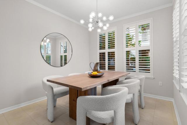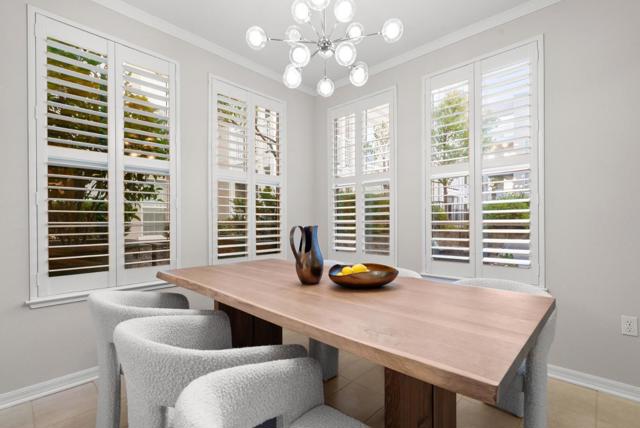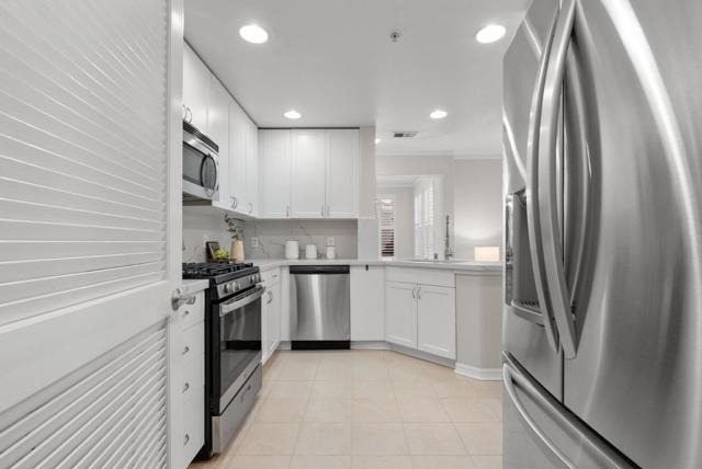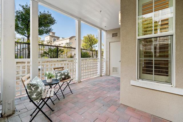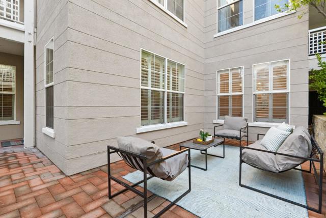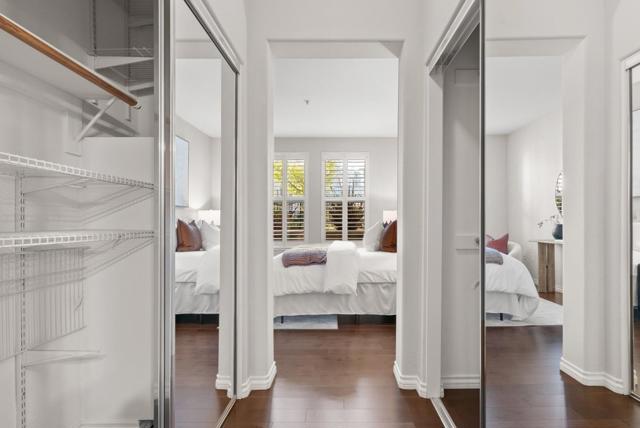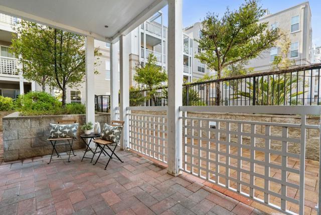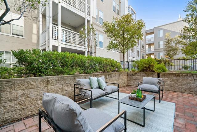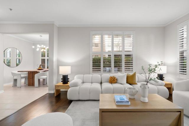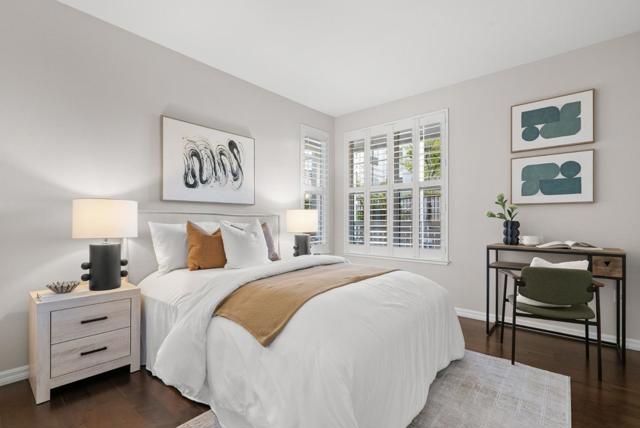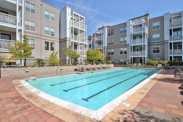 Located within the gated Miraval Community of Santa Clara, this rare first-floor end unit offers a sophisticated sanctuary with direct poolside access. The beautiful interior features rich hardwood flooring and plantation shutters and fresh new paint throughout. The remodeled kitchen is finished with new Quartz countertops and modern touches, and a separate dining area with a contemporary chandelier adds style and functionality. Distinguishing this residence is an expansive wrap-around patio that provides a private, resort-like retreat just steps from the sparkling community pool and spa. The thoughtful layout includes two spacious bedrooms with peaceful pool views, in-unit laundry, and the added convenience of two reserved parking spots with access to EV charging. Residents enjoy a true luxury lifestyle with exclusive amenities such as a swimming pool, spa, gym, clubhouse, and movie theater. Conveniently located near Rivermark Plaza, parks, trails, and major tech employers such as NVIDIA, Intel, Google, Apple, and Oracle, with easy access to Highways, and Google shuttle bus stop right outside the community.