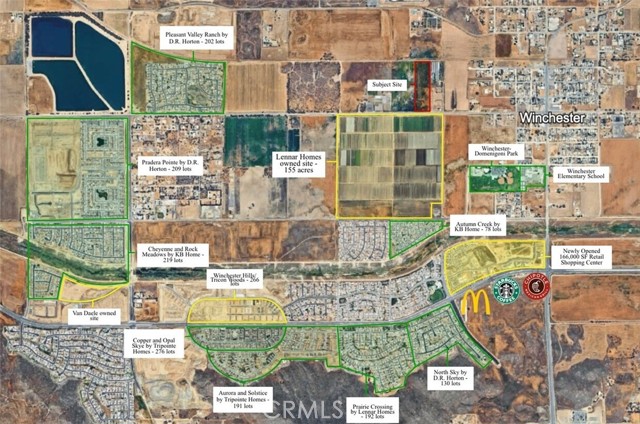 Positioned along the growth corridor of Simpson Road in Winchester, this ±9.6-acre land offering presents a compelling residential development opportunity in one of Southwest Riverside County’s fastest-growing submarkets. The Winchester area has seen an explosion of growth, especially along the Domenigoni Parkway corridor, where thousands of new residential homes have been built and continue to be delivered by multiple builders. This land has potential for approximately 140–149 townhome-style units or 50 single-family subdivisions (conceptual). All information is deemed reliable but not guaranteed. Buyer to verify zoning, allowable uses, density, development standards, and all utilities and availability with Riverside County and all applicable agencies.
