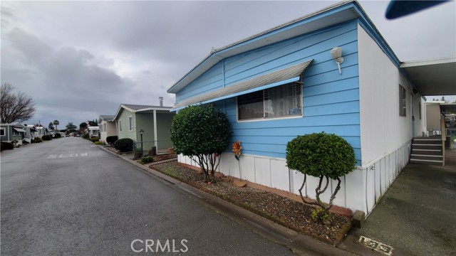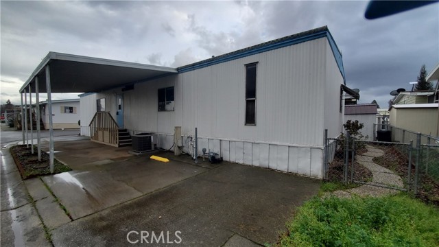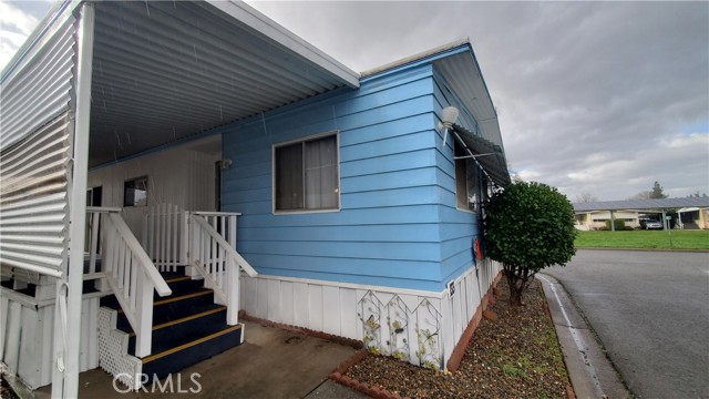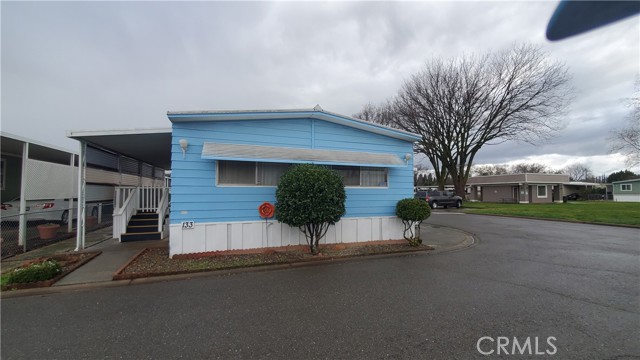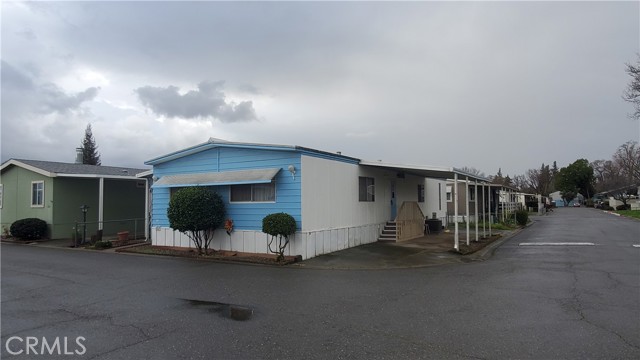 Well maintained home in Casa De Flores Mobile Home Community. You'll love the spacious layout and convenience of the kitchen overlooking the little family room area. A large living room with bright windows and a large dining area is a great place to entertain guests. Indoor laundry with a guest bathroom close by and a guest bedroom just off the bathroom make for a cozy guest space. The large master bedroom is toward the back of the home with a nice master bathroom with a soaking tub and shower. A huge covered front porch area off the front door and also has a slider from the kitchen/family room area is private and offers a nice place to relax in the evenings in the shade. You'll have extra space to store your extra stuff in the shed in the back yard space. Please don't miss your opportunity to view this wonderful home in a great senior park in Chico, you'll be impressed!