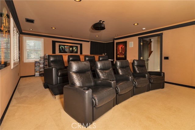 Welcome to this expansive and beautifully upgraded home located in the heart of Eastvale, offering exceptional space, versatility, and luxury living. This residence features 5 bedrooms, plus a custom soundproof home theater, a massive third-floor bonus suite with full bathroom creating endless possibilities for multi-generational living, remote work, or recreation. The main level offers a convenient bedroom with full bath - perfect for guests or in-laws along with an open-concept kitchen that flows seamlessly into the family room, ideal for everyday living and entertaining. Upstairs, the spacious primary suite is a true retreat, complete with a large private sitting room, dual vanities, and two closets. Three additional bedrooms share a full bath with separate vanity areas for added privacy. Movie nights reach a whole new level in the custom-built theater room, featuring soundproof walls, theater-style recliners, a custom bar, and built-in projector and surround sound equipment. The third floor offers an oversized bonus room with its own full bathroom - perfect as a game room, guest suite, home office, or private retreat. Additional highlights include: Newly installed backyard patio cover, Solar for energy efficiency, Spacious 3-car garage, Tesla EV connection, First floor laundry room, Low-maintenance backyard with BBQ, RV parking, Water softener, and best of all No HOA!! Conveniently located just minutes from parks, shopping, dining, and the popular Eastvale Gateway. This is a rare opportunity to own a truly versatile and upgraded home designed for today’s modern lifestyle.
