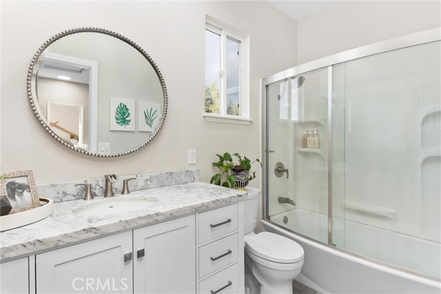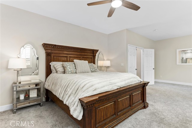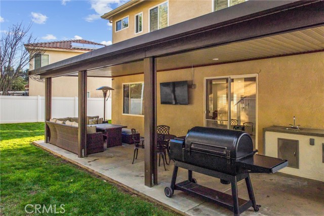 Welcome to this beautifully maintained 4-bedroom, 2.5-bath home with a spacious bonus room or optional 5th bedroom conveniently located downstairs — ideal for guests, a home office, or multi-generational living. Situated on a quiet cul-de-sac in highly desirable Upper Yucaipa, this property offers space, flexibility, and the added benefit of NO HOA. Designed for both comfortable living and effortless entertaining, the open floor plan features a formal living room, inviting family room, and dining area that flows seamlessly for everyday living. Plantation shutters throughout add timeless elegance and privacy. Smart features included smoke and co2, nest thermostat,and google home lighting. The remodeled primary bathroom offers dual sinks and updated finishes, creating a relaxing retreat. Major system upgrades include new air conditioning and a heat pump (2022), and a whole-house fan for enhanced year-round efficiency. One of the standout features of this home is the owned solar system — completely paid in full, offering long-term energy savings without lease payments or added obligations. Step outside to a true entertainer’s backyard complete with a brand-new Alumawood covered patio with lighting (2020) and an outdoor barbecue area — perfect for gatherings. The property also offers excellent storage, storage sheds, and impressive RV access parking up to approximately 50 feet in length (if shed is removed), 50 amp RV hook-up. Additional highlights include a beautiful two-car attached garage and a prime location in one of Upper Yucaipa’s most sought-after neighborhoods — all with NO HOA fees or restrictions. This is a rare opportunity to own a move-in ready home with space, upgrades, energy efficiency, and flexibility in an exceptional location. Situated down the street from Flag Hill Park, Yucaipa Regional Park, community center, and minutes from Oak Glen. This home won't last long!!