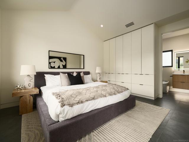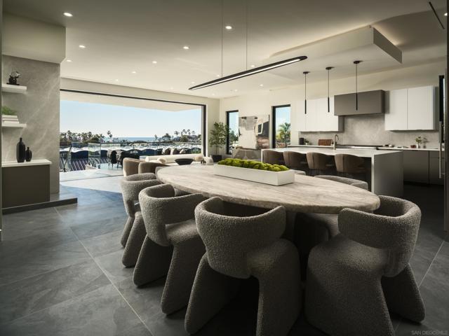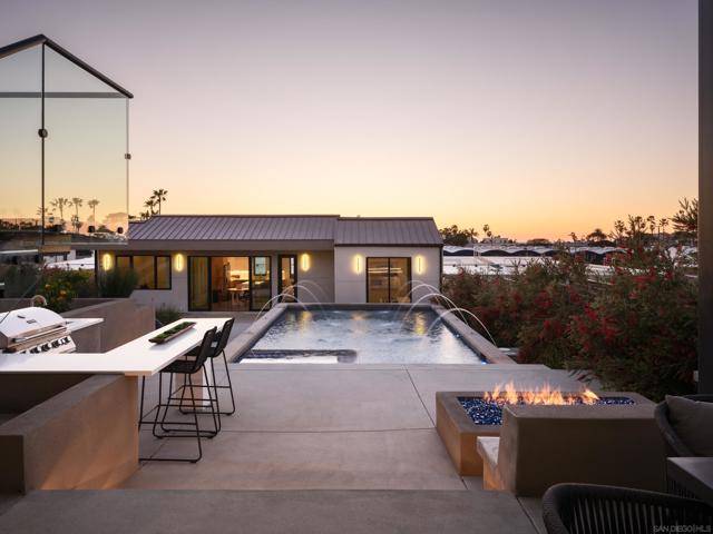 Masterfully designed by renowned EOS Architects, this newly completed warm contemporary coastal residence offers refined ocean view living on an elevated west of I-5 lot in the heart of Solana Beach, just moments to the sand and the Cedros Design District’s renowned restaurants, boutiques, and galleries. Meticulously designed as a private architectural compound, the property spans approximately 5,143 sqft including a detached 2BR/2BA ADU (approx. 1,002 sqft) with full kitchen, laundry, vaulted ceilings, and direct pool access, ideal for guests, executive office, or premium rental income. The main residence showcases clean modern lines, soaring ceilings, skylights, and a glass elevator, while expansive floor to ceiling sliding glass walls create seamless indoor/outdoor coastal living. The ocean view chef’s kitchen features sleek European cabinetry, sculptural quartz surfaces, and professional Dacor appliances, opening to light-filled entertaining spaces oriented toward sunset horizons. The entry level primary suite serves as a tranquil retreat with private patio access, coastal vistas, and a spa inspired bath. Resort caliber outdoor living surrounds a heated pool and spa with fire feature, outdoor shower, built in BBQ with bar seating, and multiple lounge areas designed for year round entertaining and relaxed coastal living. Energy efficient features include solar and zoned high efficiency heat pump HVAC for modern comfort and performance. Prime access to Hwy 101 and I-5. A rare opportunity to own a brand new ocean view residence in one of North County’s most walkable and sought after coastal communities!