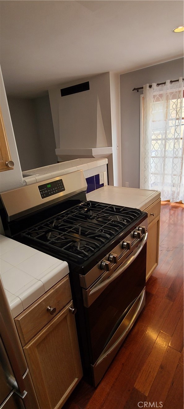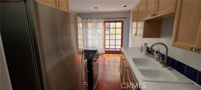 Beautiful light and bright 1 bdrm 1 bath condo in a highly desirable location just 5 blocks to the beach - close to Palisades Park, and a ½ block walk to trendy Montana Avenue with its fantastic shopping, coffee houses, and restaurants. Walking distance to Whole Foods, Pavilions, Santa Monica Pier and Third Street Promenade. This is the perfect neighborhood for walking, running, or biking. Amenities include gas fireplace with black marble tile hearth; hardwood floor throughout; jacuzzi bathtub; balcony with terracotta tile accessed via gorgeous French door slider; stainless steel appliances including dishwasher, 5 burner stove with center grill, Fisher Paykel refrigerator with bottom drawer freezer; skylights in kitchen and bath – kitchen skylight with screen opens for added airflow; living room and bedroom both have recently installed stylish roller shades that allow light but ensure privacy (please note: photos show wood slat blinds which have been removed), as well as new lighted ceiling fans; loads of storage in bedroom closet and hallway cabinets; 1 assigned off-street parking space with two large lockable storage units; shared pay laundry with unrestricted hours. Owner pays trash and water, tenant pays gas and electric. This 2nd floor unit in an 11 unit building has security entrance gates at front and rear. Make an appointment to come see your new home!
