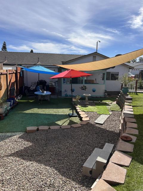 Welcome to your cozy home! Upgraded and ready to move in. Located at a shoulder of the cul-de-sac. No thru traffic, calm neighborhood. Kitchen has new granite countertops and a new sink. Includes refrigerator, oven, microwave oven, and dishwasher. Washer and dryer in the garage. All white modern kitchen cabinets. Tile flooring, with a breakfast nook. Living room adorned by California plantation shutters. Ample backyard to grow vegetables or just enjoy entertaining. With covered patio. Fully remodeled patio with custom bar counter. New redwood fence (north side). New 40 Gallon hot water tank. New air and heat mini-split rated for 800 SQF. Electrical improvements. All electrical outlets and switches replaced, recessed lighting added recently, crown molding in living room added recently. Turf landscaping installed in front and back to add aesthetic and to save water. Leased Solar can easily be be assumed by the buyer, to save in electrical bills.