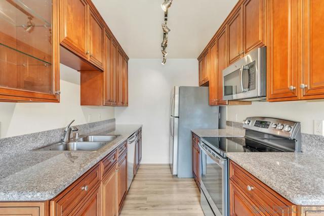 Welcome to Villa La Jolla, where this first-floor, one-bedroom condo offers stunning open view and a cozy 691 square feet of living space. The unit features a nice kitchen with stainless steel appliances. The large patio provides a private outdoor retreat, complete with storage closet. The large bedroom is designed with mirrored closet doors with tons of storge space. Carport parking is included. Villa La Jolla boasts fantastic amenities, including two swimming pools, two relaxing spas, a well-equipped gym, and a welcoming clubhouse. With easy access to I-5 and SR-52, you're just minutes away from shopping and the beautiful La Jolla Shores Beach.