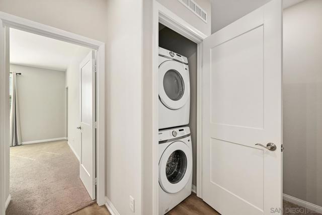 This beautifully designed tri-level townhome in Melrose Heights offers owned solar, guest parking directly in front of the unit, and an attached two-car garage. The open floor plan showcases durable flooring throughout the main living areas, a light-filled living room with balcony access, and a beautifully appointed kitchen featuring quartz countertops, a center island, crisp white cabinetry, stainless steel appliances, and recessed lighting. All bedrooms are thoughtfully located upstairs, including a spacious primary suite complete with an en-suite bathroom and walk-in closet. A full-size Samsung washer and dryer convey with the property for added convenience. Enjoy resort-style community amenities including a pool, spa, BBQ areas, tot lot, and recreation spaces—perfect for both everyday living and entertaining.