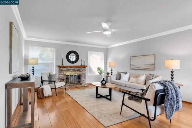 Beautiful home and stunning view! This single-level retreat captures sweeping panoramic views of Mt. Diablo. Offering approximately 1,662sqft of thoughtfully designed living space plus an extraordinary 1,500+sqft sunroom for over 3,000sqft. of enjoyable space, this home blends comfort, flexibility, and unforgettable scenery. The dramatic sunroom featuring soaring ceilings and walls of natural light creates a stunning space for entertaining, recreation, or inspired creativity, all framed by picturesque Mt. Diablo. Inside, hardwood floors and fresh interior and exterior paint provide a crisp, move-in-ready feel. A functional floor plan includes a separate living room with fireplace, flexible gathering spaces for everyday living, and a formal dining area where Mt. Diablo serves as your unforgettable backdrop. The light-filled kitchen with breakfast bar opens seamlessly to the family room, ideal for casual connection and entertaining. Located in the highly sought after Larkey Park neighborhood, just moments from parks, scenic trails, shopping, dining, and convenient access to Hwy 680. This is Walnut Creek living at its most scenic.