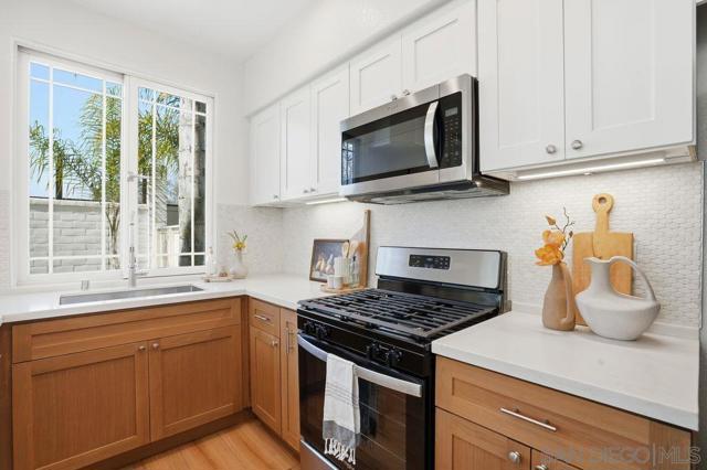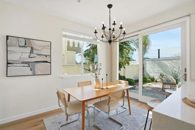 Beautiful Encinitas townhouse delivers elevated coastal living just minutes from Moonlight State Beach and vibrant downtown Encinitas. Newly renovated and filled with natural light, this beautifully updated 1,088 sq. ft. home offers modern comfort in a highly desirable coastal community. The fully equipped kitchen features stainless-steel appliances, a large pantry, new counter, new cabinets and a sunlit window that brightens the space. Downstairs showcases wood flooring, while upstairs offers brand-new neutral carpeting for a fresh, contemporary feel. Expansive ceilings, upgraded light fixtures, and ceiling fans enhance the open and airy layout throughout. The inviting living room is centered around a cozy fireplace and features sliding glass doors that open to a private, fenced, low-maintenance backyard — ideal for relaxing after the beach or entertaining guests. Additional upgrades include central air conditioning and heating, plus a full-size washer and dryer for everyday convenience. The attached one-car garage is complemented by an additional assigned parking space. Residents enjoy resort-style community amenities including a pool, spa, BBQ area, and a private fenced dog park. Turnkey, stylish, and ideally located near the sand, dining, and shopping — this is Encinitas coastal living at its finest.