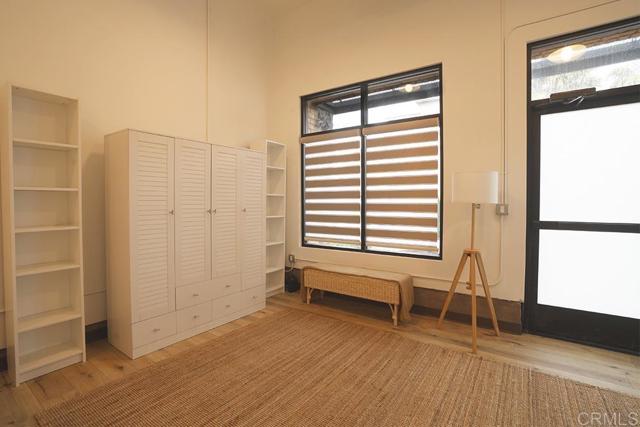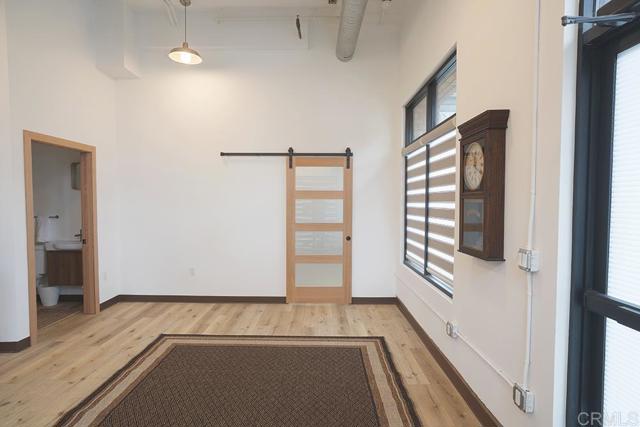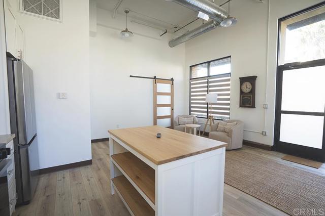Rare live/work condo offering flexible residential and retail use in a prime location. This unique 1-bedroom, 1.5-bath unit features approximately 700 sq ft with dramatic 15-foot ceilings and a striking modern industrial storefront design. Interior finishes include luxury plank flooring, designer Bali zebra shades, shaker cabinetry, and quartz countertops. The kitchen is equipped with all new Samsung stainless steel electric appliances, including a counter-depth French door refrigerator, slide-in range/oven, and advanced microwave. In-unit washer and dryer included. Building features include fire sprinklers and a central alarm system.Two exclusive parking spaces convey. Community amenities include pool, spa, BBQ area, and outdoor patios. Ideally situated within walking distance to parks, restaurants, and major shopping including Walmart, Target, and over 100 additional retailers. Directly adjacent to the San Luis Rey River and approximately one mile to the Camp Pendleton San Luis Rey gate. A rare opportunity for those seeking flexibility, functionality, and modern design in one space.