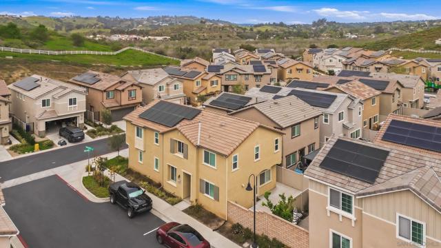 Welcome to a residence that masterfully balances contemporary design with the practical demands of a modern lifestyle. Only four years young, this impeccably maintained four-bedroom, three-full-bathroom home is situated in a vibrant, burgeoning community. It offers a sophisticated "lock-and-leave" lifestyle without sacrificing the warmth and spaciousness required for a growing family or those who love to entertain. The ground floor serves as the residence's functional nucleus, characterized by an open-concept layout that encourages seamless interaction. The kitchen flows effortlessly into the main living area, ensuring the chef is always part of the conversation. Unique to this floor plan is a secluded bedroom and a full bathroom located downstairs. This "flex space" is a premium asset, ideal for multigenerational living, providing privacy and accessibility for guests or extended family, or as a quiet, professional-grade home office removed from the upstairs living quarters. The second floor is dedicated to relaxation and productivity, featuring a massive secondary family room that acts as a buffer between the primary and secondary bedrooms. This oversized family room is perfect for a home theater setup, a dedicated gaming zone, or a sprawling children’s play area. Strategically tucked away is a cozy "landing zone" or tech nook. This intentional architectural detail provides an organized environment for a homework station, a crafting corner, or a secondary workspace, keeping the bedrooms as pure sleeping sanctuaries. In an era where time is the ultimate luxury, this home - Returns your weekends to you. The Homeowners Association (HOA) manages the front and side landscaping. This ensures a pristine, uniform neighborhood aesthetic while relieving you of the labor-intensive duties of weeding, mowing, and pruning. In addition, this property is equipped with a solar energy system grandfathered into the NEM 2.0 (Net Energy Metering) program. Modern smart-home technology is woven into the home's fabric, offering keyless entry and remote control over essential home functions, providing both security and peace of mind. Location is the cornerstone of real estate value, and this property is positioned in a high-growth corridor: immediate access to local parks and walking trails, proximity to a planned 24-acre recreational area, promising a boost to both quality of life and future resale value, and minutes away from top-rated schools, premium shopping districts, and major military installations, making it an ideal choice for service members and commuters alike. Planned 24-acre recreational area: https://www.bonsallchamber.org/calendar/#!event/2025/2/18/bonsall-community-park-ground-breaking