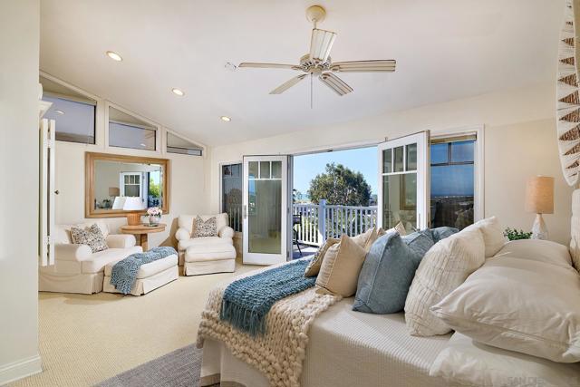 Experience Panoramic ocean views from this exquisitely detailed coastal residence set in Solana Beach, perfectly positioned in one of North County’s most desirable and rare beachside neighborhoods, this craftsman inspired coastal estate offers an exceptional blend of timeless elegance, modern upgrades, and effortless coastal living. A gated entry and fountain greets and provides privacy, The light-filled interior features gorgeous hardwood floors, extensive custom millwork including beadboard detailing, and a beautifully reimagined gourmet kitchen with a substantial island, custom cabinetry and well appointed stainless appliances, designed for both everyday living and entertaining. A grand primary suite with vaulted ceilings, hosts a sitting area, walk out deck with panoramic ocean views, the primary bath featuring abundant light, built in make up table, claw foot tub along with two additional bedrooms. The ground level hosts a 4th bedroom with a walk out deck and separate bonus room/den served by a well appointed 3rd full bath. The outdoor living space is equally impressive with expansive decking, a striking wood-burning exterior fireplace, flagstone walkways, and professionally designed landscaping, creating private spaces to relax, entertain, and enjoy the ocean breezes and spectacular Pacific views. Ideally located just moments from the sand and within easy walking distance to the vibrant Cedros Design District, renowned restaurants, boutiques, the Del Mar Race Track, and popular local beaches. An exceptional coastal retreat where luxury renovations, ocean views, and an unbeatable walk-to-everything location come together to create a truly special offering.