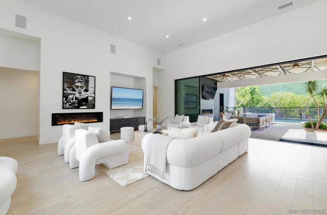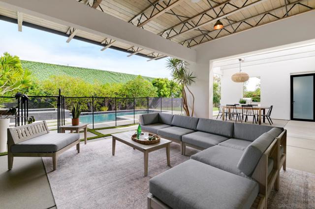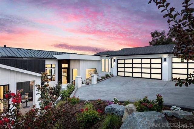 A 2020-built modern farmhouse in sought-after West Olivenhain, this custom estate blends industrial-inspired architecture with refined contemporary design on a large private lot. Designed for seamless single-level living, the home offers 1,150 sq.ft. of covered outdoor space overlooking a resort-style pool and spa. Dramatic ceilings, Fleetwood and LaCantina doors, and premium Marvin windows create effortless indoor–outdoor flow throughout the open-concept living spaces and chef’s kitchen. The thoughtful layout features a private primary suite and two bedrooms—including an office with separate entrance—on one wing, with two additional en-suite bedrooms on the opposite side. Resort-style amenities include smart home technology, integrated indoor/outdoor surround sound speakers, EV chargers, an oversized garage, and expansive grounds with an outdoor kitchen, lawn, and space for a garden or orchard. A dedicated wellness retreat features a Hume sauna system, Core Chill Blue Cube cold plunge, shower, heated towel bar, plus an additional ~150 sq.ft. space with a half bath and outdoor shower. Additional upgrades include InfraTech outdoor heaters, additional solar panels, solar tubing for the saltwater pool, whole-home water filtration, and security cameras—all controllable from your phone. The home also offers new custom primary closets and electric blinds throughout, completing this exceptional modern coastal retreat.