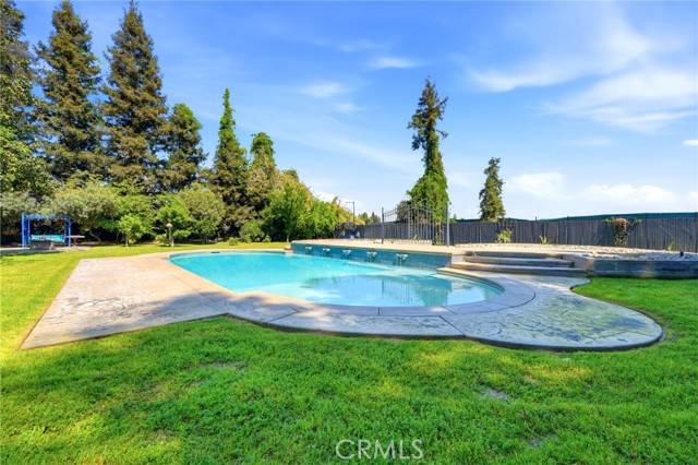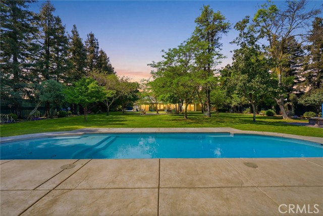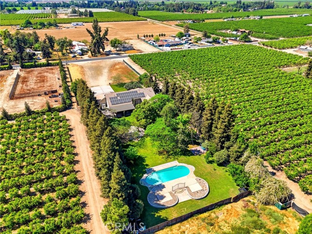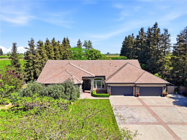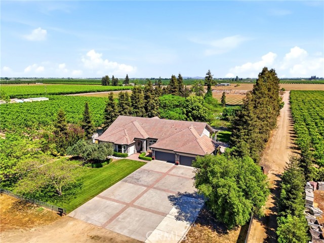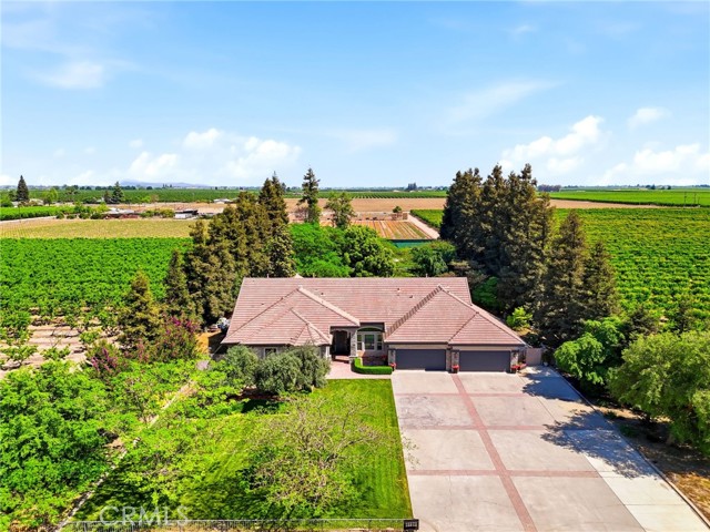 Experience refined country living in this stunning 3,600 sqft custom built estate set on 2.36 private acres of peaceful countryside, located near the city of Kingsburg. Designed with both luxury and functionality in mind, this exceptional home offers 4 bedroom, 3 full bathrooms, and an extra room perfect for an office or game room, creating the perfect balance of comfort and entertainment. Step inside to soaring 14-foof ceilings in the grand living room, highlighted by a beautiful gas fireplace and abundant natural light. The formal dining area is elegantly appointed with a breathtaking Schonbek crystal chandelier, adding timeless sophistication for hosting memorable gatherings. The chef's kitchen is truly a showpiece, featuring dual built-in refrigerators with custom panel overlays, expansive counter space, premium cabinetry, and an oversized walk-in pantry designed for ultimate organization. A large indoor laundry room adds everyday convenience. Retreat to the luxurious primary suite, where comfort meets indulgence. Enjoy a cozy gas fireplace, spa-like bathroom with integrated sound system and separate his-and-her walk-in closets. Every additional bedroom also features its own walk-in closet, ensuring generous storage throughout. This home is equipped with premium amenities including:whole house vacuum system, tankless water heater, and a 46 panel owned solar system for energy efficiency. Outdoors, the property transforms into a park-like sanctuary. Mature shade trees and fruit trees create a serene backdrop to the custom swimming pool, ideal for entertaining or relaxing. Dedicated outdoor bathrooms enhance convenience for poolside gatherings. On clear days, enjoy beautiful eastern views of the Sierra Nevada mountains, and take advantage of the property's close proximity to the scenic Kings River. Offering the tranquility of country living with modern luxury comforts, This extraordinary property delivers privacy, space, and resort-style living all in one remarkable estate!