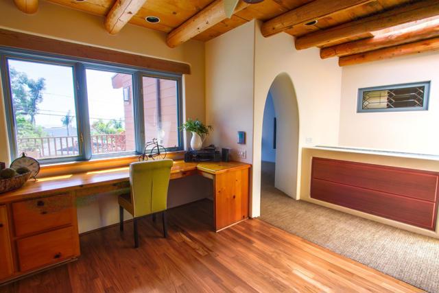Furnished monthly rental available at the prime location in Cardiff by the beach in San Diego! April-June $14,000 per month , July-August $18,000 per month all utilities and gardener included in the rent. Minimum 30 dys. West of I-5 with ocean views! Pass through the dramatic mosaic entrance into a private courtyard, continue through a wall of French Doors to this masterfully designed custom home. The formal dining room has a kiva fireplace and buter's pantry. Take the nautical spiral staircase to the top deck with a kitchen and entertainment area and enjoy panoramic view of the ocean. 3 Bedroom , 4 bath and 2 offices, rental to maximum 7 guests total. Provides utensils , linens,towels, dishes, cookware, glassware. The master bedroom exudes natura light streaming from both sides of the room and overooks the privatedoors leading to the wrap-around deck facing the West into the Pacific Ocean.