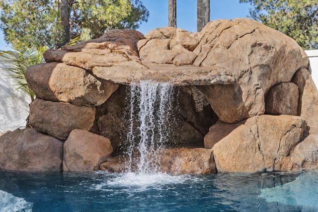 POOL PROPERTY WITH BEDROOM AND FULL BATHROOM DOWNSTAIRS. Located on a quiet street in the Rancho Del Oro community, this 4-bedroom, 3-bath home offers 2,300 sq ft of well-designed living space and an entertainer’s backyard that truly sets it apart. The resort-style yard features a rock grotto pool and spa, with the spa tucked inside the cave and a waterfall cascading into the pool, creating a private, vacation-like setting. A built-in BBQ island and multiple seating areas make this an ideal space for hosting or relaxing year-round. Inside, the home has been recently improved with new luxury vinyl plank flooring and offers a bright, open feel with vaulted ceilings and abundant natural light. The floor plan includes a bedroom and full bathroom on the main level, perfect for guests or multi-generational living. The kitchen opens to the family room and backyard, enhancing the indoor-outdoor flow. Upstairs features three additional bedrooms, including a spacious primary suite. Additional highlights include a 3-car garage and a convenient location near parks, schools, shopping, and coastal access. A well-maintained and thoughtfully updated Rancho Del Oro home designed for comfortable living and entertaining.