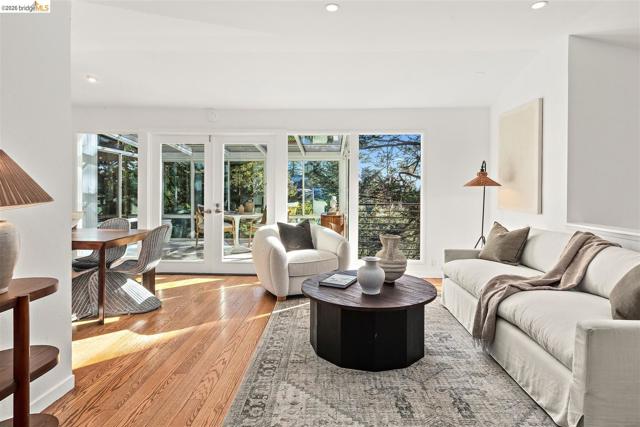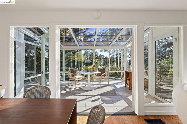 Natural light, privacy & indoor-outdoor living—everything buyers love about Montclair hills homes comes together at 6272 Clive Ave. Extensive improvements include remodeled kitchen & primary bathroom, foundation underpinning, exterior paint, air conditioning, deck reinforcement & major landscaping upgrades. A spacious living room flows into the dining area creating an open main living space. A solarium provides a sitting room surrounded by nature with views of the wooded setting year-round. An adjacent deck extends the living space outdoors making BBQs & entertaining easy. The remodeled kitchen features updated cabinetry & generous counter space. Two bedrooms & a full bath complete the main level. Downstairs the flexible lower level offers multiple options with a bonus room for family room, office, gym or guest space. The primary suite features tall ceilings, renovated bathroom & access to outdoor areas. Multiple outdoor spaces include a front patio, deck off the dining area & landscaped backyard with room to relax, garden or play. Located minutes from Montclair Village, Joaquin Miller Park & miles of trails with access to shops, cafes, restaurants, parks & top-rated schools while feeling like a private retreat in the trees.