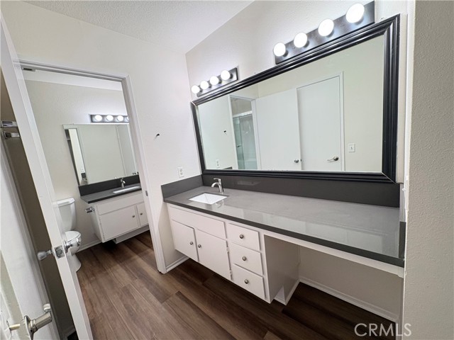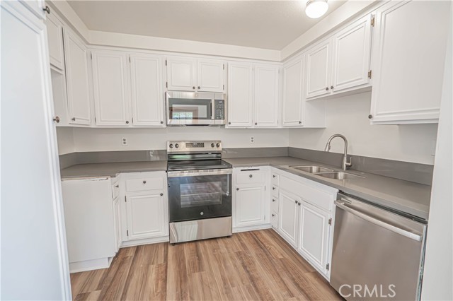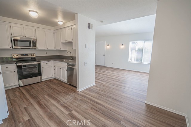 Welcome to this beautifully updated 3 bedroom, 1.5 bath end-unit condo in the desirable Valencia Fairways community of Valencia. With fresh upgrades, a spacious layout, and a prime location near golf, schools, and commuter routes, this home offers comfort and convenience in one of Santa Clarita’s most sought-after neighborhoods. Step inside to a bright, open main living area featuring fresh interior paint and brand-new flooring throughout, creating a clean and modern feel from the moment you enter. The updated kitchen showcases quartz countertops, new stainless steel appliances, and ample cabinetry, making it both stylish and functional for everyday living and entertaining. The primary bedroom features its own private, oversized bathroom vanity as well as a walk-in closet, and all bathrooms have had beautiful brand new quartz countertops installed as well. As an end unit, the home enjoys additional privacy and plenty of natural light. Sliding doors open to a private patio, perfect for morning coffee, outdoor dining, or relaxing evenings, and there is plenty of space and sunlight for growing a garden! Residents of Valencia Fairways enjoy access to multiple association pools and community amenities, all while living adjacent to the scenic fairways of Vista Valencia Golf Course. The location is ideal for both lifestyle and convenience - Just minutes from California Institute of the Arts, College of the Canyons, top-rated local schools, shopping, dining, and easy freeway access for commuters. This community is also FHA & VA approved, and fully warrantable for conventional financing. This is a rare chance to own an updated home in a prime Valencia location at an affordable price, close to everything while offering peaceful community living.