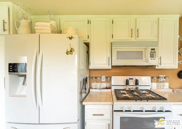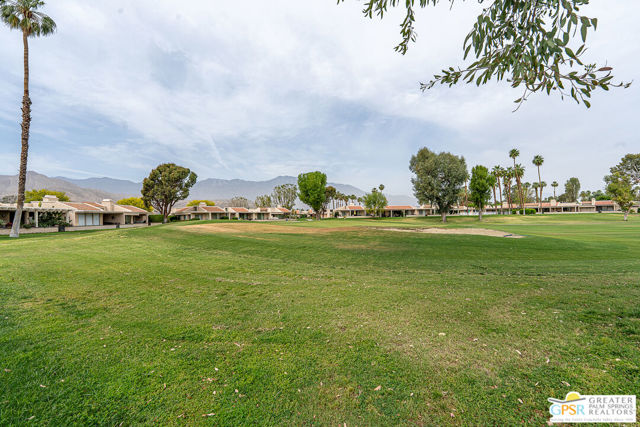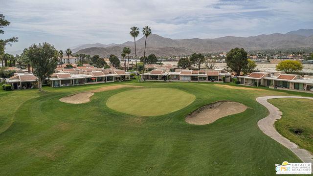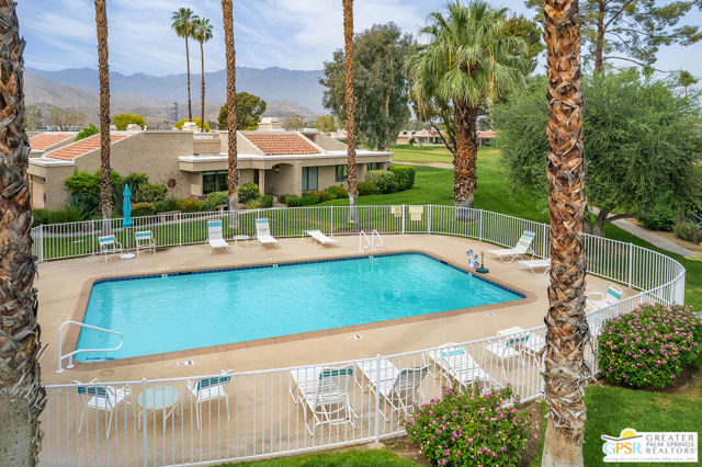 California Dreamin' and Good Vibrations!. These are two great California songs which help describe this wonderful spacious 3 Bedrooms and 2 Baths Condo on the 6th hole of the desirable Cathedral Canyon Country Club golf course. Be immediately welcomed with good vibes in this Desert California lifestyle living home and the entire complex extends the same feelings right at your doorstep. You are invited to visit your future and beautiful 3 bedrooms 2 baths home, right before you even enter, you encounter a meticulously maintained garden including from a small amount of desert plants and its lush tapestry of blooms variety, colors and fragrances. Find yourself indulging the aromas of an evergreen Rosemary Plant for the culinary enthusiasts, elegant scents of a Rose Plant, Lilly of the Nile, Indian Hawthorn and an all grown fragrant Plumeria well known to intensify its perfumes in the evenings and ideal for your leis creativity. Once inside you encounter spacious vaulted ceilings with skylight for a bright afternoon while entertaining friends and family. Making sure you give some use to the wet bar and fireplace by the living room. The bedrooms layout separation, provides privacy to your and guess and a centered atrium with a water fountain for calming sounds, movement and life, it is garden friendly with power water and drain perfect to create your own indoor spa like oasis. If you are looking for the best location condo in the complex, look no farther. It provides, from your private covered patio spectacular mountain views and colorful sunsets settling the afternoons and welcoming a full of stars night. Its green belts is perfect for morning walks, join your colleagues for a round of golf and/or just socialize. The pool and jacuzzi are just steps away from your front door. A two car attached garage for convenience and an enclosed patio out of the second bedroom facing South with a grown and productive pink grape fruit tree. Do not let this opportunity to own on the Cathedral Canyon Country Club slip by. HOA included; Internet, Basic Cable, Trash, Sewer, Common Areas Maintenance, Roof, Landscaping, Pools, Spas and the Social Life Style the in the community.