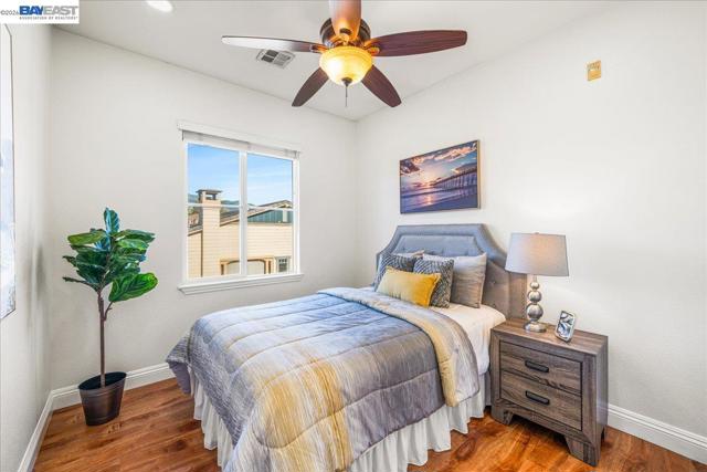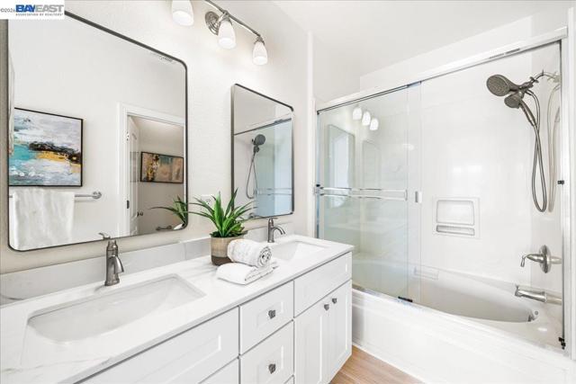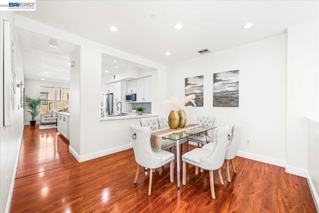 Welcome to this beautifully updated 3-bedroom, 2.5-bath townhome in the sought-after Mayfield community of Warm Springs, Fremont*Perfectly positioned overlooking the community park & walking paths, this light-filled home offers a rare blend of privacy, views, & convenience*The open floor plan features laminate flooring, recessed lighting, fresh interior paint, & a stylish kitchen w/new cabinetry, quartz countertops, & stainless steel appliances*The living room showcases soaring ceilings & a cozy gas fireplace, while large windows throughout fill the home w/natural light*Both full bathrooms have been refreshed w/new vanities, refinished tubs, new faucets, & updated fixtures, along with new toilets in all 3 bathrooms*The spacious primary suite offers vaulted ceilings, a private balcony w/park views, & a walk-in closet*Convenient first-floor laundry includes a washer and dryer*The tandem 2-car garage provides generous storage*Enjoy the enclosed front patio overlooking open green space, perfect for relaxing outdoors*The Mayfield community features a central greenbelt park and community center with a low HOA. Ideally located near Warm Springs and Milpitas BART, Tesla, shopping, hiking trails, and Highways 680, 880, 237. Move-in ready! Oepn house Sat 3/21 & Sun 3/22 ~ 1:00-4:30 PM.
