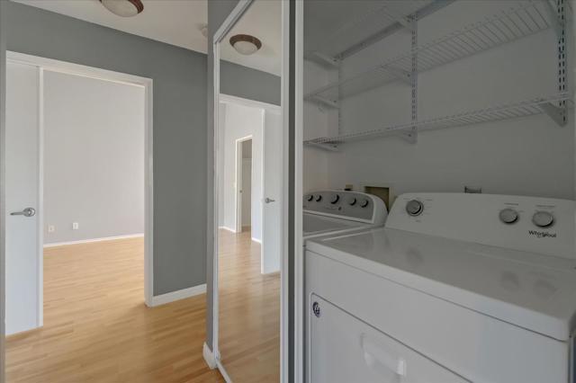 Cozy two-bedroom in a quiet Oceanside neighborhood is now ready for love! This charming home is adorned with large glass windows that bathe the interior in natural light! Walls in a lovely shade of blue and wood-inspired flooring make the house feel warm and inviting. Central A/C is available, and a ceiling fan in the open plan living and dining area provides refreshing cross-ventilation. Recently updated kitchen features countertops with elegant marble design and white cabinetry with lots of storage space! Comes fully equipped with a Whirlpool French-door fridge, smart freestanding gas range with integrated griddle, and microwave. A top-load washing machine and a dryer are also available in-unit for your convenience! Both bedrooms have spacious built-in closets. Master has direct access to the common bathroom, which has a shower-and-tub combo, a vanity with a large mirror, and a medicine cabinet. The second bedroom features a beautiful reading bench by the window! With easy access to highways and freeways, Camp Pendleton, and minutes away from downtown and Oceanside Beach.