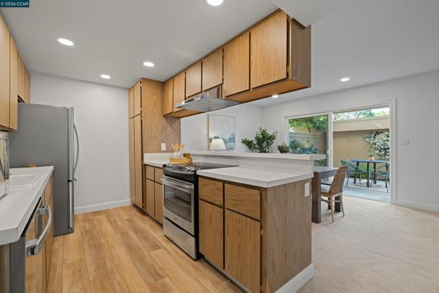 Wonderful value for this highly desirable Sunset Park townhome situated in a quiet and peaceful area of the community overlooking the lush greenbelt. New interior paint, recently updated stainless steel kitchen appliances, updated bathrooms and more. Spacious upstairs bedrooms with nice amounts of closet space too. Both front (with greenbelt views) and rear patios feature easy to care for plantings offering beautiful spring color. Enjoy your morning coffee, relax in the tranquil patio area and enjoy the company of your friends. Private one car garage with automatic opener & storage shelves plus a second parking space and ample guest parking. EV charging is available at the clubhouse, homeowner needs to register to use chargers and for payment. Convenient interior laundry includes washer and dryer. Such a perfectly located neighborhood too! Close proximity to Heather Farms, John Muir Hospital, Diablo Hills Golf Course, convenient shopping and restaurants. Enjoy the beautiful Iron Horse Trail and nearby Broadway Shopping. Don't miss this amazing opportunity! Live on MLS this Friday, Open House Sunday 1-4pm.