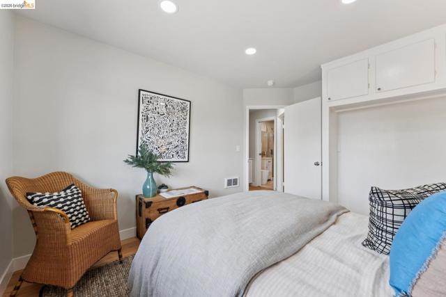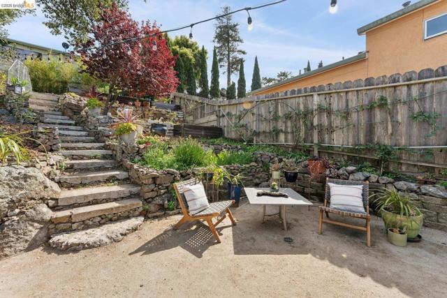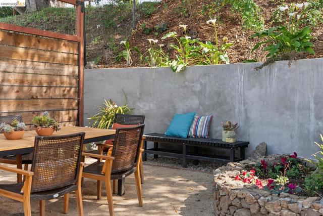 Updated light-filled all-electric midcentury bungalow in enchanting hilltop cul-de-sac setting with views of Wildcat Canyon. Turn-key gem, thoughtfully renovated with a nod to clean modern design. Open plan space lives much larger than its footprint. The glass kitchen door draws you to a patio designed for entertaining, & a gardener's dream side yard sink/potting area. Indigenous rock & recycled concrete terraces, retaining walls, & rustic staircase beside large boulders secure the feeling you're part of a woodland environ where nothing goes to waste. Chef's kitchen with custom maple cabinets, high-end smart Bosch appliances - dishwasher, induction cooktop range, convection oven, warming drawer, and a combo second oven/microwave/exhaust fan. FisherPaykel French door refrigerator, accessorized deep stainless sink, wine frig, under-cabinet lighting, on-demand hot water, breakfast bar, sleek quartz countertops, & hand-made designer backsplash tile complete the kitchen. Spa-inspired bath renovations include custom shower & chair-height toilet. Beyond the cosmetic, you'll find an extensive new drain system, & new/updated electrical, plumbing, roof, driveway & patios front and back. Nearly level in. Transbay bus & BART make commuting a breeze & only about 20 mins to Cal via Arlington
