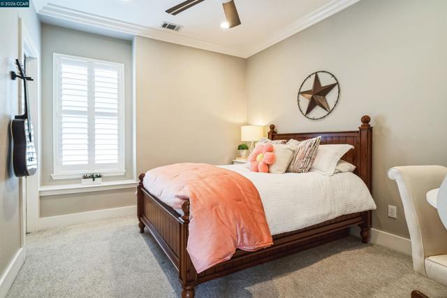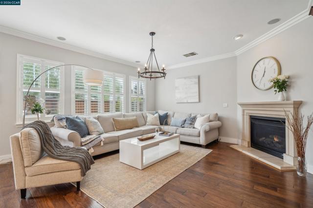 Discover your dream home, Stunning 5 BDRM, the main level 5th BDRM is currently being used as an office, 3 full BA's nestled in the prestigious Danville neighborhood designed for today’s lifestyle w an open floor plan showcasing elaborate casework finishes and detailing. The dramatic entry begins with a covered porch & custom Antigua front door, leading you past the formal dining rm w custom wood detailing, to the Chef’s kitchen with built-in top of the line stainless appliances, a large kitchen island & bar seating or relax in the adjacent family room with a cozy fireplace. The sliding glass doors lead to the backyard beach entry saltwater pool & spa w the sheer descent water features, the popular outdoor fire-pit, versatile patio areas are perfect for outdoor enjoyment & entertaining options. The luxurious primary bedroom suite is generously sized w a separate retreat leading to the luxurious bathroom, a sep. stall shower w rain shower head, soaking tub, dual vanity, 2 well-organized walk-in closets w ample storage. Down the hall is the large Bonus rm w double French doors & 3 additional spacious secondary bedrooms that access the compartmentalized bathroom. Owned Solar, 3 car garage, dry sauna, window shutters, located minutes to schools, parks, shopping & restaurants.