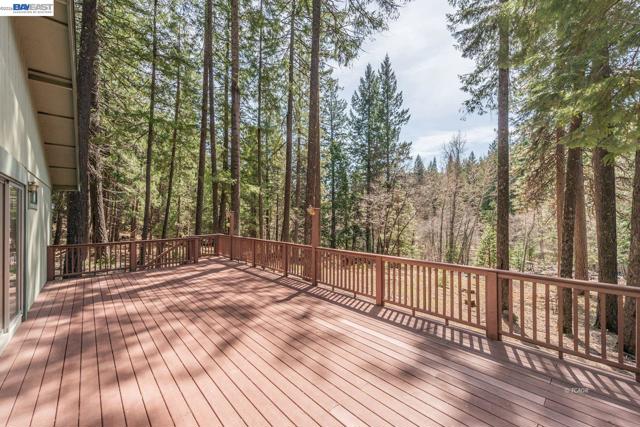 Stunning Creekside Retreat on 5 acres, with great room, loft & massive deck over looking the creek, this 1,148 sf home, offers a large downstairs bedroom and bath room, the great room features a warming woodstove, an open floor plan and an versatile loft that would be a great second bedroom or office space, the great room also has a oversized sliding glass door and large windows throughout that flood the space with natural light. Step out onto the massive deck and soak up the serene views of the creek , it's your own private oasis, ideal for entertaining, relaxing or just listen to water flow. There are two separate legal parcels being sold together, both have the creek frontage, the vacant parcel also has community water to it. The interior of the home was painted in 2024, the HVAC system is newer, the home is generator ready and features a transfer switch so no need to worry about a power outage. Property is 3 miles to Trinity Lake and to trails into Trinity Wilderness lands.