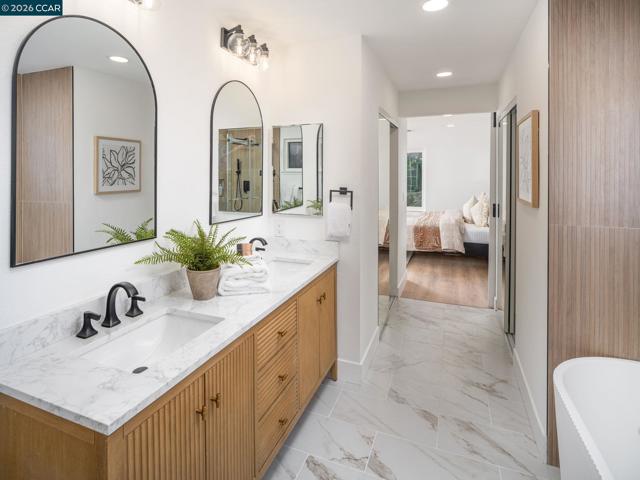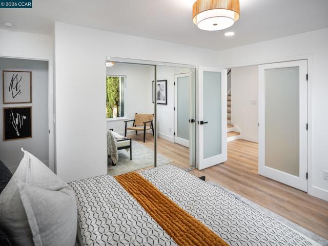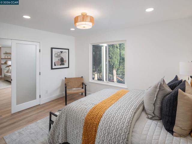 Dynamic Alamo contemporary design. All new interior. Stunning finishes. Light-filled 2788+/-SF. 2 levels on .47 acres on cul-de-sac. Captivating curb appeal. 5 bds. 3 bths. inclds 2-rm primary suite & main-level bdrm/office near full bthrm. Wood-grain luxury vinyl flrs. Recessed lighting. Stunning accent walls. Stylish chandeliers, sconces. Frosted glass-paneled double front door. Dual-pane windows. Fresh int/ext paint. Open flrplan. Living rm w/frpl, built-ins. Dining rm. Wine refrigerator. Galley-style kitchen. Quartz counters. Decorative tile bksplsh. Soft-close cabinets. Floating shelves. Brushed gold fixtures, pulls, pot filler. Bosch stainless appliances. Porcelain apron sink. Casual brkfst nook w/slider to bkyd. Walk-in pantry. Fabulous fam/game rm w/frpl, slider to bkyd. Bkyd sanctuary. Gentle slope dotted w/oaks, pines. Patios, synthetic turf, putting grn. Frt gardens. Primary suite w/balcony. Separate rm for gym, retreat, nursery. 3 reach-in closets. Spa-inspired en suite. Dual-sink vanity. Free-standing tub. Glass enclosed shwr. 3-car garage, epoxy flr. HVAC. Laundry rm w/counter, cabinets. Half-mile to Livorna Park. Near top-rated K-12 SRVUSD schls inclds less than 1.5 mi to Alamo Elementary. Near Alamo Plaza, downtown Danville, Mt. Diablo, walking trails.