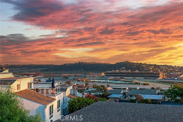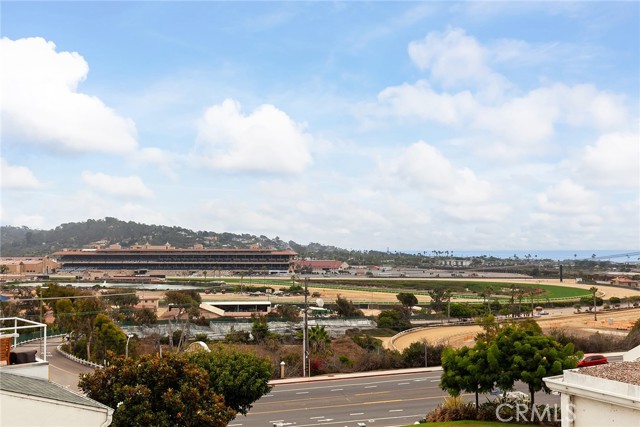 Welcome home to this gorgeous, light, bright and turn-key, end-unit townhome! Featuring expansive 180-degree panoramic views, spanning from the lush hillsides eastward, to the Del Mar Racetrack southward, and finally to the breathtaking white-water ocean vistas of “Dog’s Beach” westward. The open living room is engulfed in natural light with large windows and skylights, complemented by a cozy fireplace. The adjacent dining area offers equally majestic views and opens onto a sitting balcony perfect for enjoying ocean views and breezes. The gourmet kitchen features granite counters, a Bosch dishwasher, KitchenAid appliances, and recessed lighting, all overlooking the hills and racetrack. Downstairs, the primary bedroom features plantation shutters, with a walk-in closet and a primary bath adorned in crema marfil marble with a glass block walk-in shower. A second ensuite bedroom features oak wood floors, plantation shutters, and an updated bathroom with crema marfil marble. Additional highlights include a detached 2-car garage with washer/dryer, immediate access to a pool, spa, and exercise room, and a convenient lock-and-leave design. Situated in the esteemed Saratoga West community, this townhome offers an exceptional location just steps from the beach, Cedros design district, restaurants, library, shops, and renowned Solana Beach schools. If you are looking for luxury, convenience and a quintessential San Diego lifestyle, this is it!