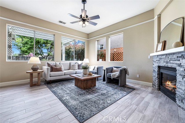 Welcome to this beautifully reimagined 1,872 sq ft single-story Leo Wilson home, offering 3 bedrooms, 2 baths, and a finished 3-car garage in a well-established neighborhood within the highly regarded Clovis Unified School District. Set among wide streets, mature trees, and a welcoming atmosphere, this home blends timeless charm with extensive modern updates. Talk about truly move-in ready!! From the moment you arrive, the fresh interior AND exterior paint create a crips, clean, and inviting presence. Inside, brand-new flooring flows throughout, featuring elegant wood plank tile complemented by plush new carpet and updated baseboards. The thoughtfully designed layout offers dual living areas, providing flexibility for both relaxation and entertaining, highlighted by a beautifully refreshed fireplace with new stonework and a custom mantle. The large kitchen as been tastefully updated wit new granite countertops, a stylish new backsplash, new hardware, and brand-new appliances including a stove and dishwasher. With convenient counter seating, a cozy breakfast nook, and a formal dining space, it's perfectly suited for everyday living and hosting alike! The oversized primary suite serves as a private retreat, complete with a spa-inspired ensuite bath showcasing designer tile, a new shower enclosure, and refined finishes. The guest bathroom has also been updated, and new fixtures throughout the home add a fresh, contemporary touch. Comfort and efficiency are enhanced by a brand-new HVAC system installed in 2024, along with added insulation and a newly installed fence. Step outside to a spacious backyard featuring an open-air feel with no rear neighbors, creating a sense of privacy. A covered patio provides the perfect setting for outdoor enjoyment year-round. With every detail thoughtfully updated, this move-in ready home showcases a COMPLETE transformation where every space has been refreshed with care and intention—offering a rare opportunity to step into a home that feels entirely new while enjoying both style and comfort in an exceptional setting. Come see it today!