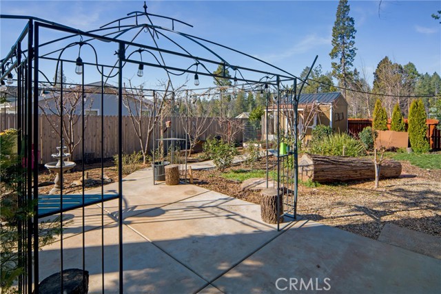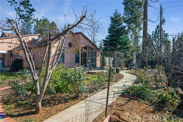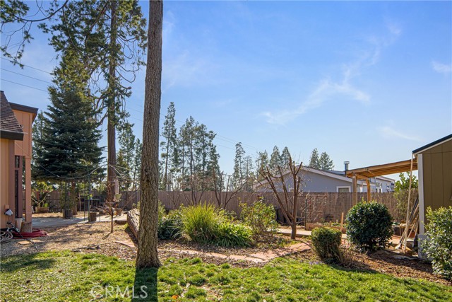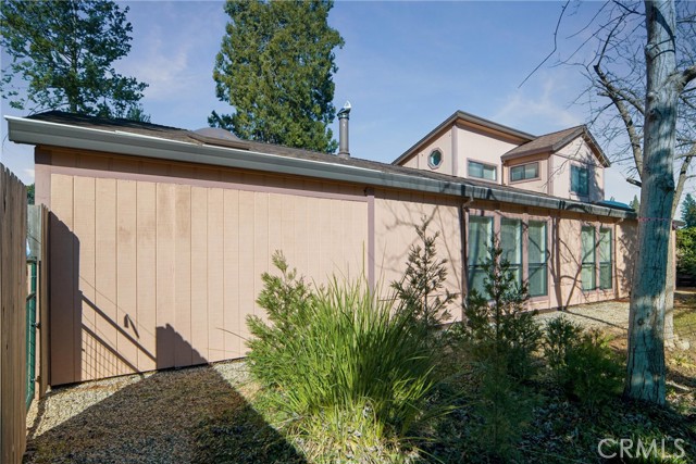 A beautiful inside, corner custom home in lower Magalia with easy access to stores and Skyway. This home is a 2/2 but has an office downstairs room that could easily be a 3rd bedroom. The backyard is beautifully laid out and landscaped with plants and trees. In fact you could have a fruit salad! There are Thompson grapes, table grapes, apple, peach, plumcot, apricot, nectarine and fig trees! A covered screened porch off the living room offers the perfect retreat without the fear of pesky bugs and even has a pet door so your furry pet can go in and out. There is also a large side dog run handy for your pet too. Outside there is a gazebo and an electrical hookup for a generator. You will see a newer 10x12 shed and a cement driveway only 2 years old. All exterior walls have a strong 6 inch studs. The cute double entry leads into a vaulted great room with an abundance of light with multiple south facing windows and skylights. The kitchen has a built in pantry, quartz counter tops, extra deep sink, built in microwave, newer dishwasher in 2019 and a pass through window to the dining room. A new minisplit was put in the livingroom. The dining room has a built in china hutch. On the lower floor is the spacious primary bedroom with vaulted ceiling, high and generous closet space. The attached bathroom offers a convenient walk in shower. The downstairs bathroom has a large soaking jetted tub, glass block window with droplet effect built in and tons of natural light. The home has low flow fixtures, storage and recirculating hot water switches for instant hot water. Upstairs you will find the guest bedroom with a built in dresser and windows on three sides for lots of air flow. Also, in the landing is a door leading to a space for a potential upstairs bathroom. The large 23"x 23' garage has a built in work bench and a skylight. A carport sits next to the house with a new cover. The yard is fully fenced for privacy and has 20 rose bushes for beauty! What more could you want? Come and check it out!