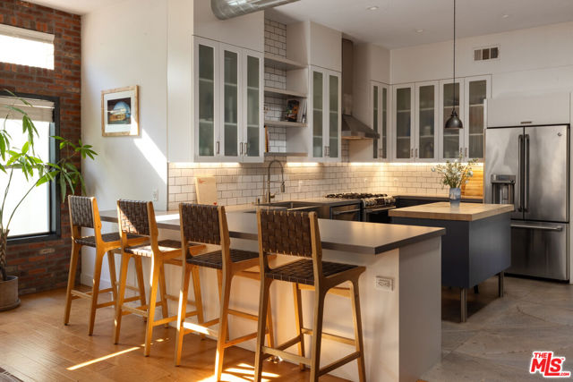 A Refined Venice Loft Just Steps from Rose Avenue. Tucked within an exclusive 3-residence boutique building, this top-floor 3-bedroom, 3-bath loft captures the essence of elevated Venice living, where architectural character meets effortless coastal sophistication. From the moment you enter, volume and light take center stage. Soaring ceilings, skylights, and expansive windows flood the interiors with natural light, while a striking exposed brick wall introduces warmth and a subtle nod to industrial design. The open-concept living, dining, and kitchen spaces unfold seamlessly, creating an environment that is both expansive and intimate perfectly suited for refined entertaining or quiet, everyday living. The kitchen is thoughtfully designed with clean lines and modern finishes, anchored by a generous island that invites gathering and connection. Every detail has been curated to balance form and function, offering a space that feels both elevated and livable. Privately positioned, the primary suite is a true sanctuary, generous in scale and designed for comfort. Featuring dual walk-in closets and a spa-inspired bath with a freestanding soaking tub, evoking a sense of calm retreat. Two additional en-suite bedrooms provide flexibility for guests, a home office, or creative space, each offering both privacy and proportion rarely found in condominium living. What truly sets this home apart is how it lives, more like a single-family residence than a condo offering both space and separation within a thoughtfully designed layout. Located just around the corner from Rose Avenue, you're just moments away from some of Venice's most coveted restaurants, cafes, and boutiques, with the beach just a short stroll away. This is a lifestyle defined by walkability, design, and the effortless rhythm of coastal living. Complete with in-unit laundry and gated parking for two cars, this residence delivers a rare combination of scale, style, and location in one of the Westside's most dynamic neighborhoods.