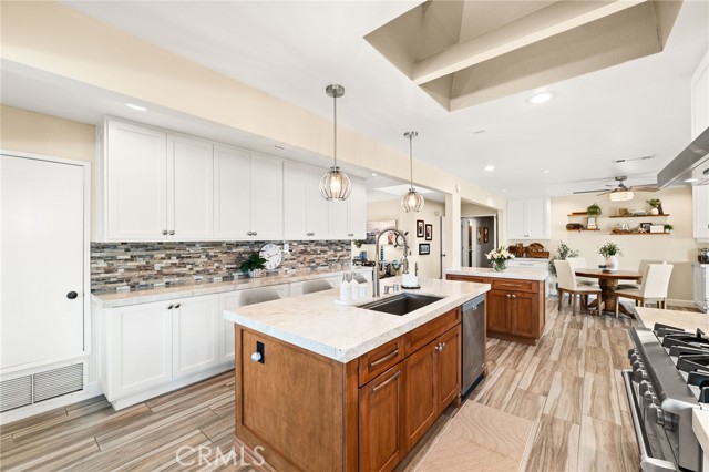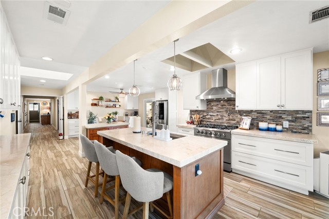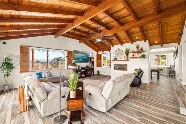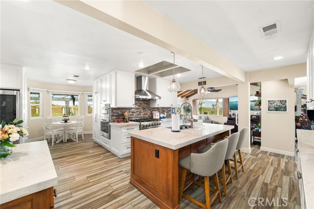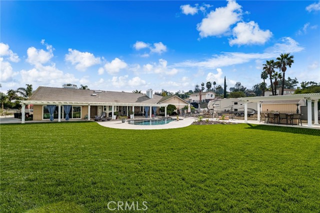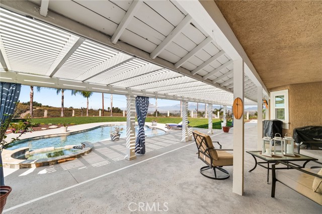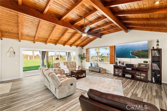 Resort-Style Estate Living on Over an Acre Welcome to 15555 Rancho Viejo Drive—an exceptional single-story estate offering space, privacy, and a true indoor-outdoor lifestyle on over an acre of usable land. Inside, a stunning great room showcases vaulted wood-beam ceilings, a statement fireplace, and expansive windows that fill the home with natural light. The remodeled kitchen is the centerpiece, featuring custom cabinetry, quartz-style countertops, stainless steel appliances, and a rare double-island layout ideal for everyday living and entertaining. The spacious primary suite offers a private retreat with its own fireplace, sitting area, and a spa-inspired bathroom complete with a soaking tub, oversized walk-in shower, dual vanities, and a custom walk-in closet. Step outside to a resort-style backyard with a pebble tec pool and spa, outdoor kitchen with pergola, fire pit lounge, covered patio, and expansive grassy area—all designed for entertaining and enjoying scenic views. Additional highlights include energy-efficient windows, a Kohler whole-house generator with automatic transfer switch, security camera system, full irrigation with updated lines, and a 3-car garage with insulated doors and its own A/C system.