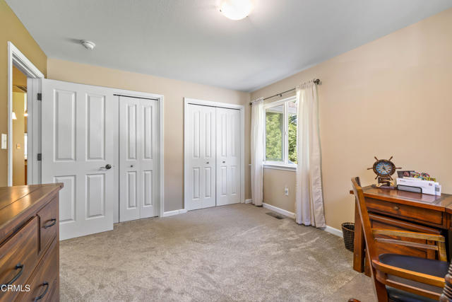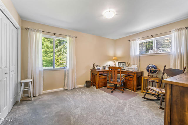Tucked at the end of a quiet lane, this thoughtfully designed property offers a rare combination of privacy, usability, and proximity, just 10 minutes to downtown amenities, coastal beaches, and scenic trails, yet perfectly positioned beyond the morning marine layer for added sunshine. Built in 2005, the 1,500+/- sq. ft. home features an open-concept layout where the living room, kitchen, and dining area flow seamlessly together. Vaulted ceilings and dual-pane windows fill the space with natural light, while a gas range anchors the well-appointed kitchen--ideal for both everyday living and entertaining. The home includes two spacious bedrooms, a flexible third room currently used as an office, two full bathrooms, and a dedicated laundry room with access to the rear deck. A large hardwood deck extends the living space outdoors, offering an inviting setting for relaxing or hosting. Additional features include a circular gated driveway, a two-car garage, and approximately 500+/- sq. ft. of upper-level space above the garage--already permitted and sheet-rocked, ready to be finished as a studio, guest quarters, or workspace. An 11kW whole-house backup generator provides year-round peace of mind. The property also offers ample room for expansion, including the potential for an additional dwelling with a separate entrance. Located outside of the California Coastal Commission, the permitting process is notably more streamlined and cost-effective.Set on a fully usable 2.5-acre parcel, this meticulously maintained property is equipped with irrigation, an automatic sprinkler system, and a 2,500-gallon water storage tank--supporting lush landscaping and the hobby garden you've always envisioned, complete with a charming greenhouse.