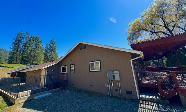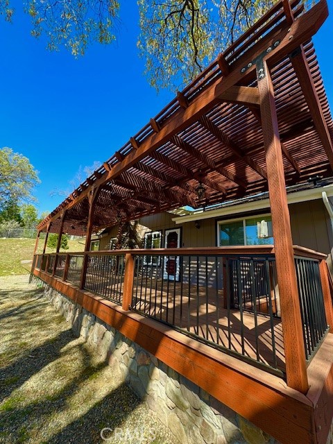 Nestled in the Majestic Pines of Mariposa is the Stunning Mountain retreat you've been searching for. This one of a kind home features three bedrooms, two bathrooms, a very spacious laundry/pantry room and a bonus detached 684 Sq Ft Studio, all set amidst the tranquil beauty of nature. The open living room and kitchen area offers ample room for relaxation and entertaining, with an impressive gas fireplace as the focal point. Recently updated with custom cabinetry and flooring, as well as a stunning new primary bath remodel, this home exudes modern elegance and warmth. Enjoy the sounds of rushing water on your front deck as the East Fork of the Chowchilla River is across the road from you. The property includes a 500-gallon propane tank, a Generac generator for peace of mind, a 2 car garage, adjacent car port with storage and a fenced backyard area for your furry friends to roam. You will certainly experience and truly enjoy the serenity and magic feeling of mountain living in this turn key gem of a home.