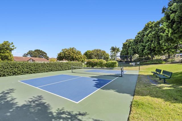 Best location in the development! Step into panoramic gorgeous Encinitas mountain views in this highly desirable quiet location in High Country Villas. Directly across the street from the beautiful 9 hole golf course, pickleball, pool and clubhouse. Upper unit with 2 bedrooms 1 bath home with no neighbors behind you. All new electrical panel just completed. Flooring, bathroom cabinet, lighting and kitchen counter tops all done. Popcorn ceilings removed. This single level town home is in a 55+ community that offers golf, swimming pool and spa, hiking/biking trails, clubhouse activities such as bocce ball, aqua aerobics, exercise classes, clubs and much more lifestyle and friendship. Less than 4 miles to moonlight beach and close to award winning shopping, dining, and medical. Enjoy unbelievable sunsets from the front of the property and follow the colors in the sky over the mountains from your private balcony in the back. Views from every window including golf course views, mountain views and hot air balloon views. Morning sunrises over the mountains are spectacular! Priced to sell so come see asap!
