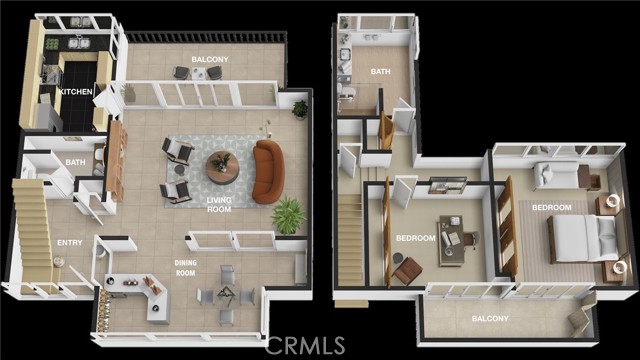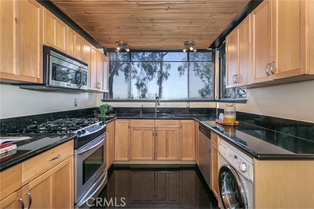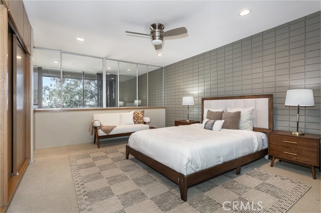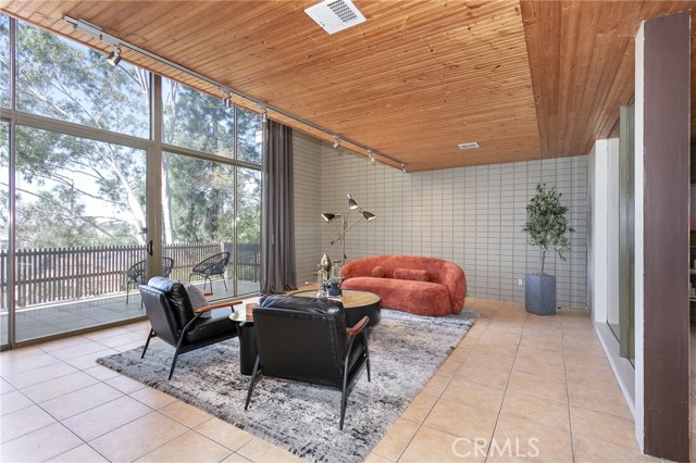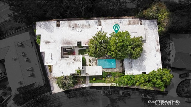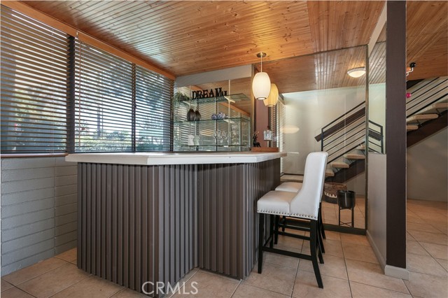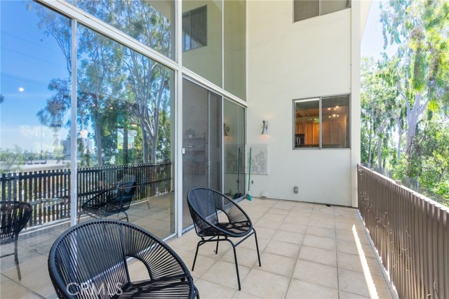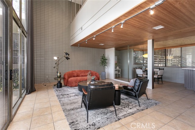 This townhome is located in the desirable Lower Hastings Ranch neighborhood of Pasadena. Close to dining, shopping, parks, golf courses, Old Town Pasadena, the Rose Bowl, PCC, Caltech, the 210 Freeway, and Metro A Line. Situated in a charming 10-unit community with mature landscaping and a central courtyard pool, this home offers a peaceful, well-maintained setting. Interior highlights include soaring vaulted ceilings, wood ceilings, concrete block accent walls, central A/C, recessed lighting, integrated laundry, and tile and carpet flooring. Expansive windows bring in abundant natural light, complemented by over 200 sq ft of combined balcony space. The living room features double-height ceilings and floor-to-ceiling windows, with sliding glass doors opening to a large balcony with city views. The dining area includes a built-in bar, ideal for entertaining. The kitchen offers granite countertops, stainless steel appliances, and a functional layout with integrated laundry. Upstairs features two bedrooms and a full bathroom. Both bedrooms feature ceiling fans, along with carpet flooring and sliding wood closets. The primary bedroom overlooks the living area below, while the second bedroom offers greenery views and access to a shared balcony. The full bathroom is updated with a modern vanity, quartz countertop, and a tile surround frameless glass shower room. Don’t miss this opportunity to own a light-filled home with architectural character and a prime location.