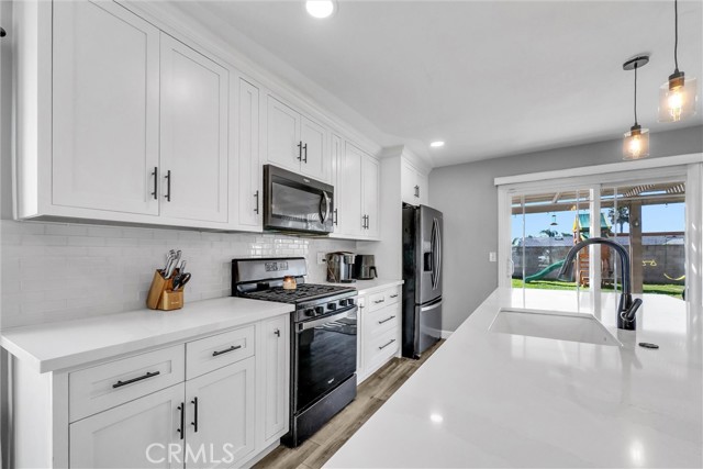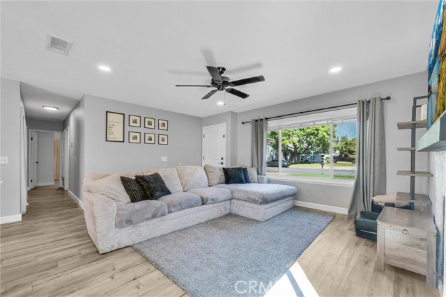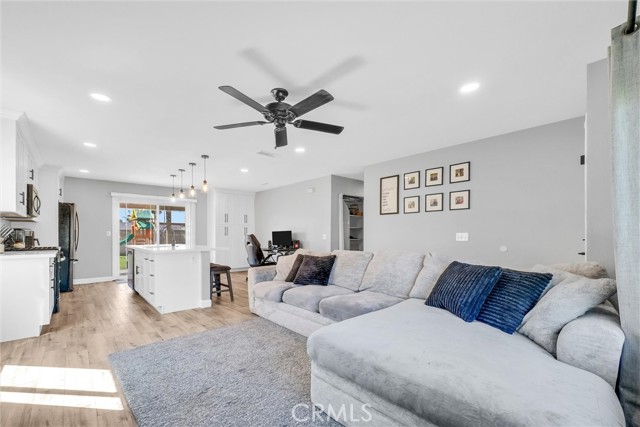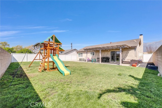 Beautiful single story 3-bedroom, 2-bath home featuring an open floor plan and numerous updates throughout. The remodeled kitchen includes a center island, with Quartz countertops, breakfast bar, and recessed lighting- perfect for both everyday living and entertaining. The spacious primary suite offers a stylish accent wall and ceiling fan, while two additional generously sized bedrooms provide comfort and flexibility. Primary bathroom with tub/show combo. Hall bath also has tub/show combo. Additional highlights include dual-pane windows with 2-inch blinds, vinyl plank flooring, panel doors, and a cozy fireplace in the family room. The home also features extra storage cabinetry in the hallway and updated A/C ducting and vents. Step outside to a large pool size lot with covered patio, block walls and vinyl fencing for privacy, plus an oversized side yard with concrete slab-ideal for potential RV parking or additional storage. Beautiful Mountain Views. So much more to offer. A must see. ****SEE AGENT REMARKS****