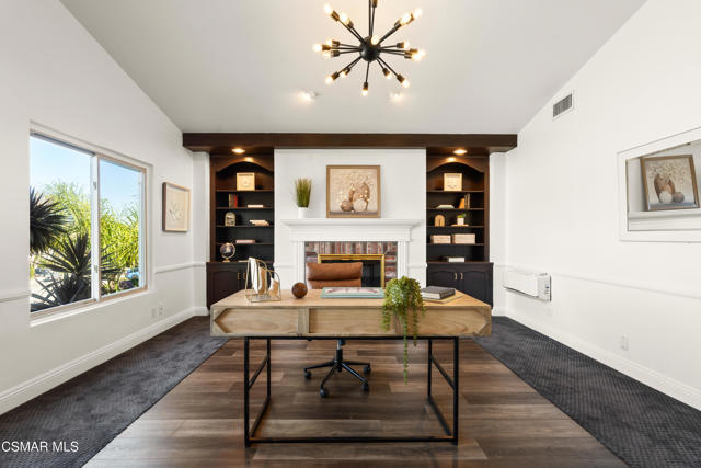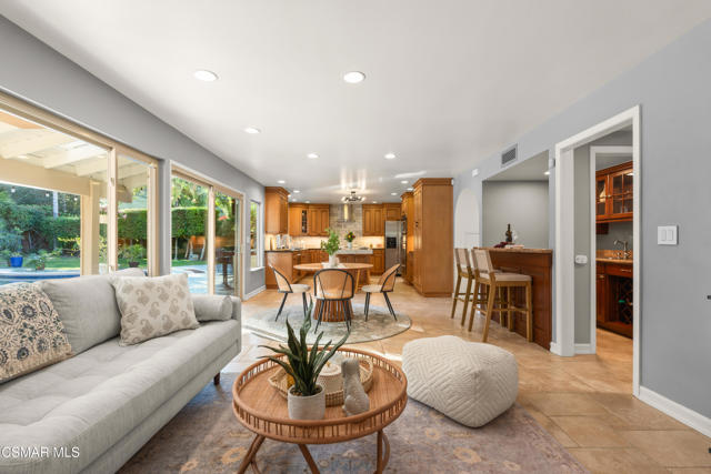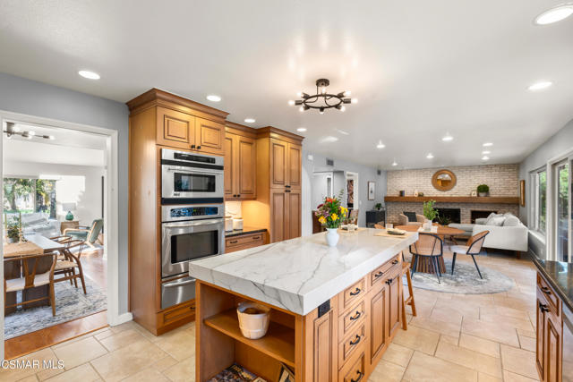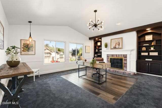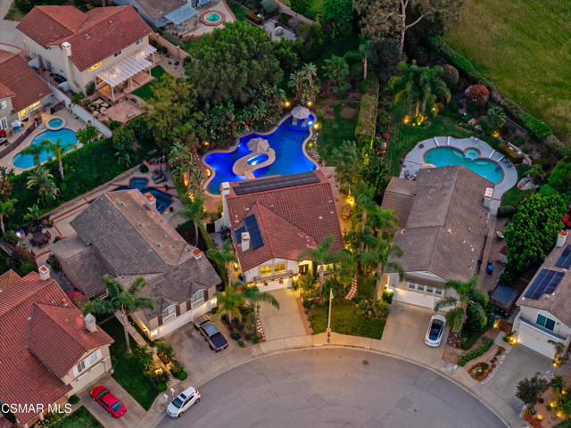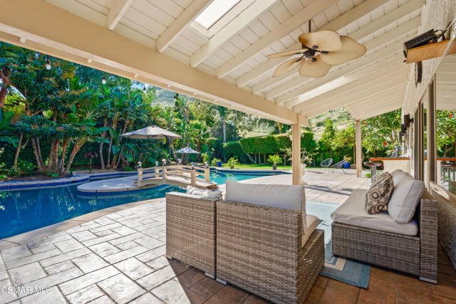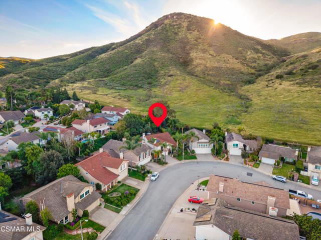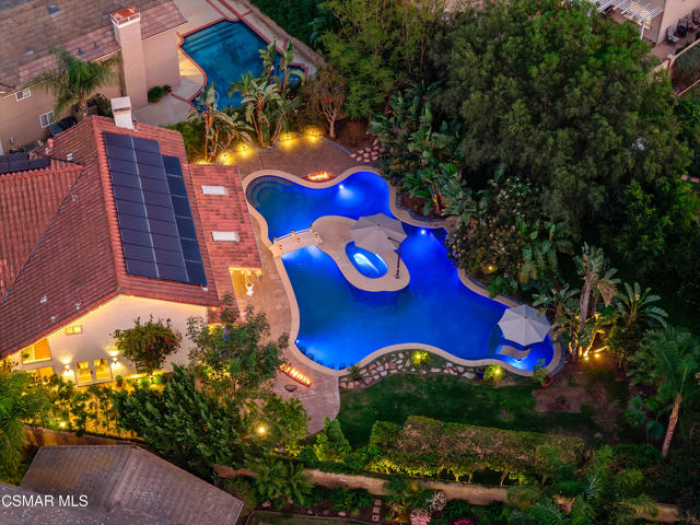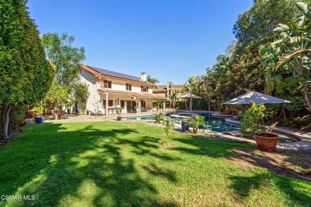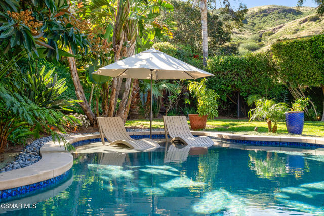 Looks can be deceiving... and this Newbury Park home proves it in the best way.From the street, it presents like a classic tract home. Step inside, and it quickly reveals itself as something entirely different. Thoughtfully upgraded, beautifully maintained, and full of unexpected moments, this home just keeps getting better the more you explore.The interior blends comfort with modern convenience. A spacious kitchen with a stunning quartzite island opens seamlessly to the family room, creating the perfect setting for everyday living and entertaining. Smart home features are integrated throughout, including a security system with smoke detectors, video doorbell, smart thermostat, wifi-enabled garage door, and a whole house water filtration system. Bathrooms have been tastefully updated, and fresh interior paint gives the home a clean, elevated feel.Upstairs, each bedroom captures serene mountain views, adding to the sense of privacy and retreat. And tucked away at the end of the hallway, a hidden bookcase door opens to a large bonus space. Whether you envision a fourth bedroom, office, studio, or game room, this flexible area adapts to your lifestyle.Then there's the backyard... and it truly steals the show.Set on a rare pie-shaped lot, the outdoor space opens up into one of the largest and most unique yards in the neighborhood. Designed for both relaxation and entertaining, it feels like your own private resort. A lagoon-style pool with an island spa and bridge creates a stunning focal point, complemented by upgraded lighting, and wifi-enabled controls. Two in-ground fire pits, an outdoor bar with honed marble counter, a dining patio with French doors, and an outdoor shower complete the experience. Mature landscaping, low voltage lighting, and mountain views create a setting that feels both peaceful and private, with ample space for future possibilities like an ADU.Additional highlights include fully paid solar, an upgraded electrical panel, Tesla charger, newer roof, and enhanced exterior finishes.This is a home that surprises you at every turn. Unique, functional, and designed for the way people actually live, it offers far more than meets the eye.