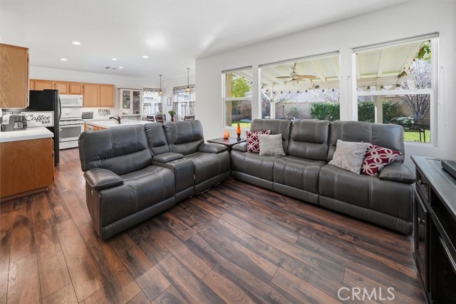 Welcome to this beautifully designed home in the highly sought-after Plum Canyon St. Clare neighborhood! NO MELLO ROOS! Offering 3 spacious bedrooms with a 4TH bedroom option DOWNSTAIRS (just add a closet), this versatile floor plan is perfect for growing families, guests, or a home office.Step inside to an open-concept great room featuring a seamless flow between the kitchen, dining area, breakfast counter, center island, and family room—ideal for both everyday living and entertaining. Luxury plank vinyl flooring runs throughout the home, complemented by an abundance of windows that fill the space with natural light.Upstairs, you’ll find a generously sized primary suite complete with a walk-in closet, along with two additional well-proportioned bedrooms and a convenient desk niche—perfect for work or study. The upstairs laundry room adds everyday ease and functionality.Enjoy outdoor living in the picturesque backyard, featuring a covered patio with ceiling fan, grassy area, and lush landscaping—perfect for relaxing or hosting gatherings with a peek-a-boo view of the surrounding hills. An attached generator is included, providing added peace of mind.Residents of this desirable community enjoy fantastic amenities including a pool, spa, basketball court, park, and playground—all just minutes from shopping, grocery stores, casual and fine dining, and everyday conveniences.This home truly offers comfort, flexibility, and a prime location—don’t miss the opportunity to make it yours!