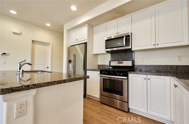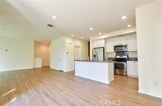 Ready to move in! The Orchards Community of Upland. This 3-bedroom, 3 full bathroom condo, built in 2016, is move-in ready and boasts quality upgrades. The home features a spacious open floor plan with laminate wood plank flooring in the living room, dining, and kitchen areas. The kitchen is an entertainer's dream, complete with a large center island with granite countertops, white wood cabinetry, and stainless steel appliances. HOA offers pool, spa, clubhouse, and play area.
