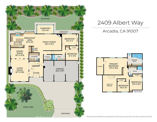 Arcadia Unified School District – Walking Distance to Longley Way Elementary. Located within the highly acclaimed Arcadia Unified School District, consistently ranked among the top in California and nationwide, this home offers access to award-winning schools known for academic excellence, outstanding test scores, and a 97% graduation rate. First time on the market in 25 years, this custom-built home by George Weagen (2000) has been meticulously maintained inside and out, showcasing true pride of ownership. From the beautifully cared-for landscaping to the well-preserved interior, this is a rare opportunity in today’s market. The home welcomes you with a grand double-door entry, soaring ceilings, and an abundance of natural light enhanced by dual pane windows throughout. Elegant details such as wainscoting panels, gorgeous moldings, detailed baseboards, wood shutters, and recessed lighting create a timeless and sophisticated atmosphere. Designed for both comfort and entertaining, the home features a formal living room and formal dining room, along with a spacious living room centered around one of two stone fireplaces. The thoughtfully designed layout also includes a bright breakfast area and a well-appointed kitchen with a center island, built-in stainless steel and black appliances, and seamless flow into the main living spaces. A wet bar and wine refrigerator further enhance the home’s entertaining appeal. The flexible floor plan offers 2 bedrooms and 1.5 bathrooms on the main level—ideal for guests, multigenerational living, or a home office. Upstairs, the expansive primary suite provides a private retreat with high ceilings, a spacious bathroom, and a large walk-in closet. Additional highlights include central heating and air, an indoor laundry room on the first floor with ample cabinet storage, a durable tile roof, and a spacious 3-car garage. Step outside to beautifully landscaped front and rear yards featuring a variety of flowers and fruit trees, along with a versatile bonus sunroom—perfect for relaxing, entertaining, or enjoying indoor-outdoor living. Conveniently located just minutes from the LA County Arboretum, Santa Anita Mall, Santa Anita Park racetrack, parks, H Mart, 99 Ranch Market, popular restaurants and cafes, USC Arcadia Hospital, and easy access to the 210, 605, and 10 freeways. A turnkey home in a prime location with top-tier schools—this is a rare opportunity you won’t want to miss.