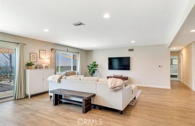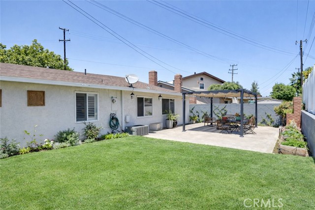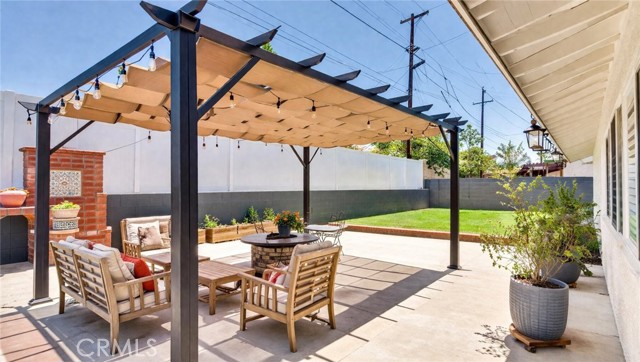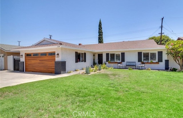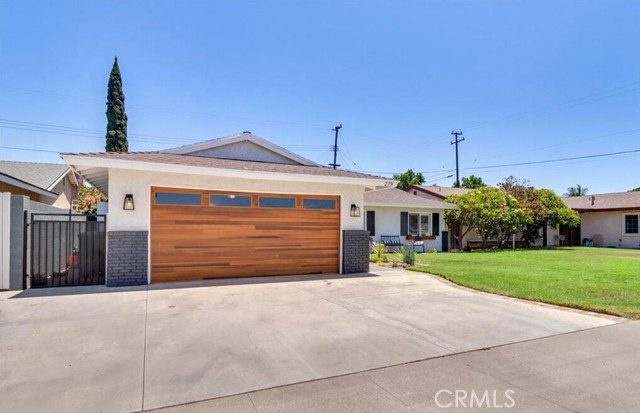 Beautifully updated single-level home showcasing an open-concept layout and thoughtfully curated finishes throughout. From the charming curb appeal—highlighted by a wood-grain garage door and custom window box planters—to the stylish interior details, this home blends comfort and design effortlessly. Inside, the light-filled living room offers a warm and inviting space with recessed lighting, custom window coverings, a cozy fireplace, and seamless access to the backyard—perfect for both relaxing and entertaining. The adjacent kitchen and dining area are designed for everyday living, featuring stainless steel appliances, a slide-in dual oven, French door refrigerator, granite countertops, a center island, and additional peninsula seating. The spacious primary suite serves as a private retreat with an ensuite bath showcasing dual sinks, a walk-in shower, and tasteful farmhouse-inspired finishes. Secondary bedrooms are generously sized and share a beautifully remodeled hall bathroom with updated fixtures and stylish tile flooring. Step outside to a peaceful backyard complete with a covered pergola, expansive patio, grassy area, raised garden beds, and block wall fencing—offering both privacy and functionality. This home delivers the perfect blend of style, comfort, and livability.