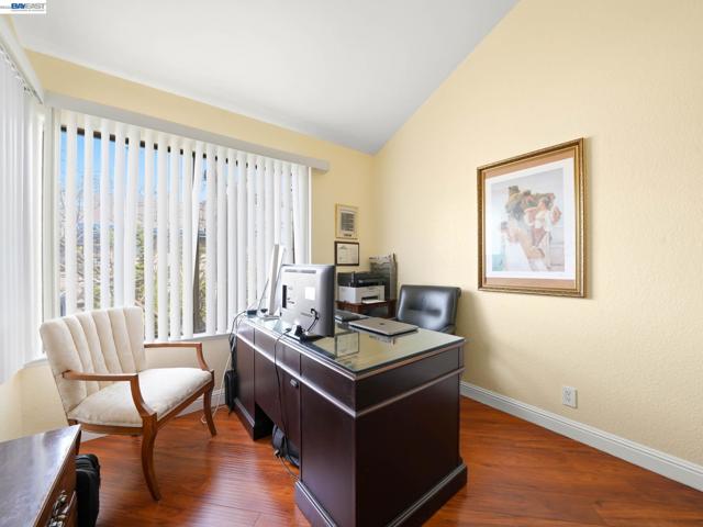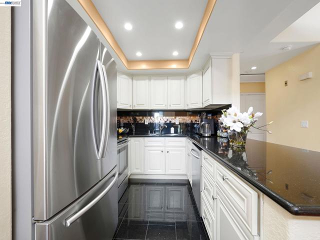 This two-bedroom plus a Den, move-in ready condo is located on the second floor in the highly desirable Waterford Community. Filled with natural light, the spacious living area features soaring vaulted ceilings, a cozy fireplace, and recessed lighting, creating an open and inviting atmosphere. The versatile den offers the perfect flex space for a home office, reading lounge, guest area, or creative studio. The updated kitchen features granite countertops and a convenient breakfast bar, ideal for everyday living and entertaining. The spacious primary suite provides a comfortable retreat, while in-unit laundry adds to the home’s functionality. Step out onto your private patio overlooking a serene pond, perfect for relaxing at the end of the day. Enjoy resort-style amenities including a pool, spa, sauna, gym, tennis courts, and beautifully maintained grounds. Ideally located near NewPark Mall, Pacific Commons, great dining options, Ohlone Newark Campus, and with easy access to I-880, Highway 84, and the Dumbarton Bridge. This unit includes covered assigned parking for added convenience. A must-see opportunity you don’t want to miss.