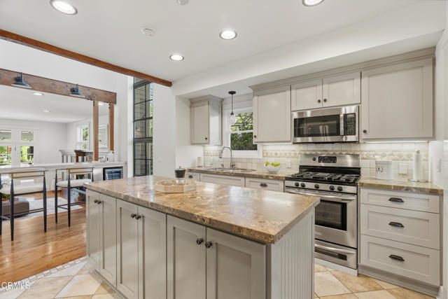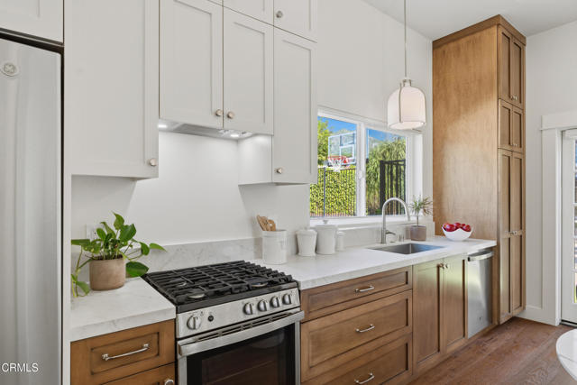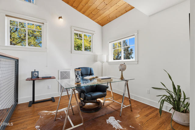 Experience comfort, character, and relaxed California living in this charming Craftsman in the heart of Sierra Madre. The property includes a 1,920-square-foot main residence plus a newly built two-bedroom ADU with 610 square feet of additional living space. Set against breathtaking San Gabriel Mountain views and just moments from Bailey Canyon Trail, this special property offers both tranquility and convenience. A welcoming front porch shaded by Jacaranda trees sets the tone for the home's warm and inviting feel.Inside, the desirable open floor plan flows from the dining room with original hardwood floors into the tastefully remodeled kitchen and spacious living room. French doors open to the backyard, creating an effortless indoor-outdoor connection. The living room features wood floors, a gas fireplace with raised hearth, and beautiful built-in cabinetry.The updated kitchen is designed for both function and style, with a large walk-in pantry and breakfast bar with beverage fridge. Striking floor-to-ceiling windows repurposed from an old school bring in abundant natural light and add distinctive architectural character.Upstairs, the primary suite enjoys tranquil mountain views, vaulted ceilings, a cozy fireplace, and a spacious walk-in closet. A covered balcony overlooks the backyard and mountains beyond, creating a peaceful retreat. The primary bath includes a claw-foot tub, separate shower, and serene tree-top views. A dedicated home office with built-in bookshelves and mountain views completes the upper level.The private ADU features its own entrance and separate driveway access, high ceilings, large windows with beautiful mountain views, a full kitchen, a flexible office or second bedroom, and a bedroom with walk-in closet, making it ideal for guests, extended family, or rental income potential.Designed for entertaining and everyday enjoyment, the resort-style backyard features two covered patio areas, a lap pool and spa, a producing avocado tree, and a gated area with a basketball hoop. A one-car garage sits at the front of the property, while additional rear parking is accessed through an automatic driveway gate. Fully paid solar panels and a newly installed HVAC system add efficiency and year-round comfort. Schedule your private viewing today!