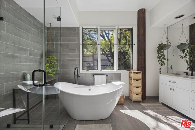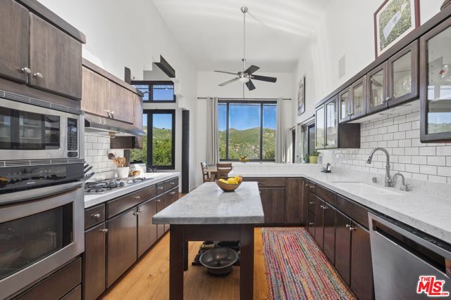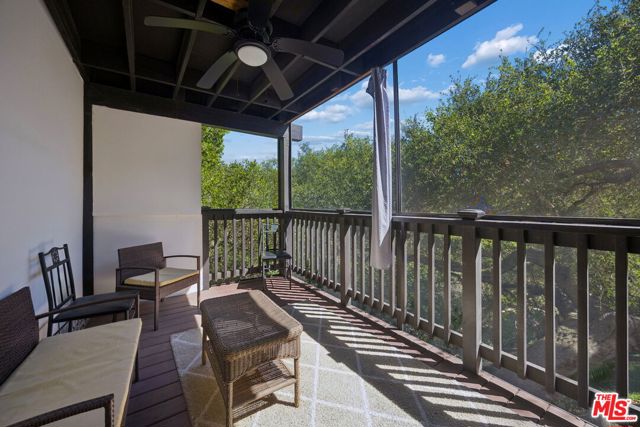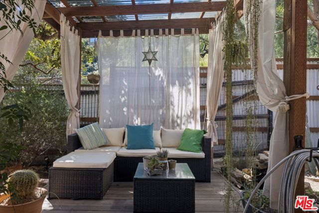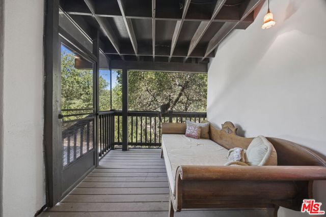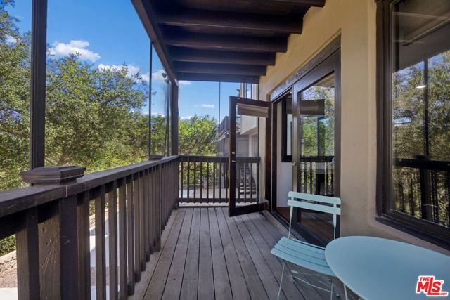 Tucked into the tranquil hills of Corral Canyon there is a serene Malibu retreat that captures the relaxed beauty of canyon living with easy access to Malibu's coastline. Surrounded by sweeping canyon and mountain views, the home sits on a generous lot filled with mature greenery, beautiful oak trees, and the quiet serenity that makes this tight knit, quaint pocket of Malibu so special. The home welcomes you through a charming garden entry courtyard. The interior features soaring ceilings and architectural elements such as wood beams, large windows and reclaimed wood flooring throughout. This four-bedroom residence offers a comfortable layout with spaces that flow naturally towards the outdoors. The primary suite, along with the open living room, dining room, half-bath, and spacious chef's kitchen and large porch (great for barbecuing), are on the main level, while the downstairs consists of an open family room flanked by two additional bedrooms. The fourth bed has a separate entrance and serves as an attached guest suite complete with kitchen, laundry, outdoor shower, hot-tub and a tranquil sitting area. Outdoor living is woven throughout the home with multiple decks, including screened outdoor living spaces - perfect for morning coffee, sunset dinners, or simply enjoying the serene canyon setting. If you've ever dreamed of a Malibu hideaway, this charming community provides a peaceful escape while remaining conveniently located just 8 minutes from Pacific Coast Highway and local amenities. This home captures the magic of Malibu canyon living, where nature, space, and seaside adventures come together.